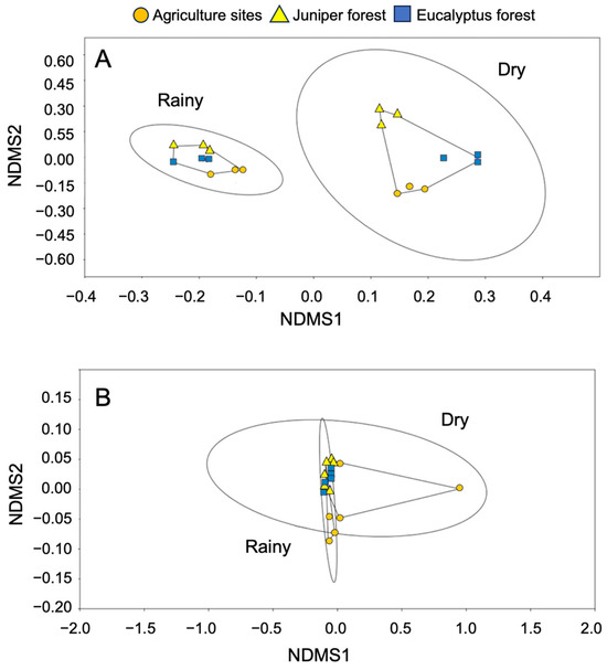 - Oksanen, J.; Blanchet, F.G.; Friendly, M.; Kindt, R.; Legendre, P.; McGlinn, D.; Minchin, P.R.; O’Hara, R.B.; Simpson, G.L.; Solymos, P.; et al. Vegan: Community Ecology Package. R Package Version 2.5-6. Available online: https://CRAN.R-project.org/package=vegan (accessed on 27 May 2024).