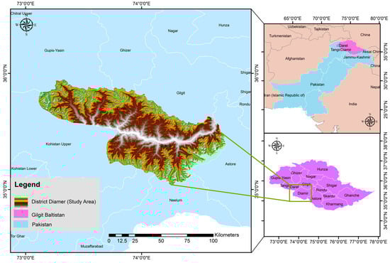 Gilgit-Baltistan is situated in northern Pakistan, at the intersection of Central Asia, China, and South Asia as shown in Figure 1. It is nestled among the towering ranges of the Himalayas, Karakoram, Pamir, and Hindukush mountains [1,4].