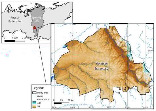 - Atlas of Krasnoyarsk Krai and the Republic of Khakassia; Isaev, A.S., Ed.; Roskartografiya: Moscow, Russia, 1994. [Google Scholar]