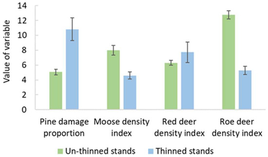 - Pfeffer, S.E.; Singh, N.J.; Cromsigt, J.P.G.M.; Kalén, C.; Widemo, F. Predictors of browsing damage on commercial forests—A study linking nationwide management data. For. Ecol. Manag. 2021, 479, 118597. [Google Scholar] [CrossRef]