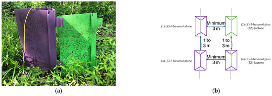 - Lindgren, B. A multiple funnel trap for scolytid beetles (Coleoptera). Can. Entomol. 1983, 115, 299–302. [Google Scholar] [CrossRef]