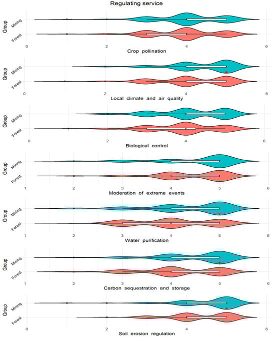 Regulating services perceptions between mining and forest experts (p < 0.05) *. Note: The * indicates statistically significant differences between groups.