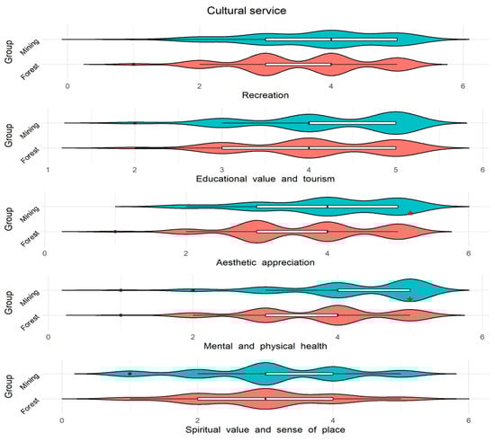 Cultural services perceptions between mining and forest experts (p < 0.05) *. Note: The * indicates statistically significant differences between groups.