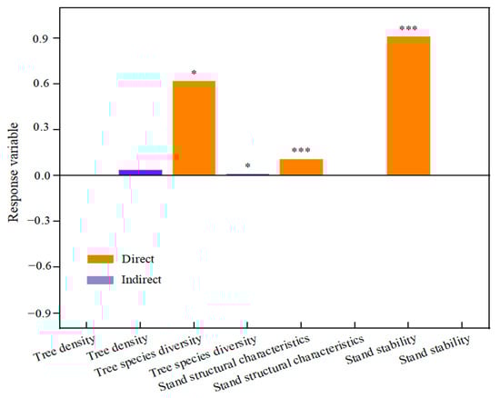 3.2. Direct and Indirect Effects of Stand Factors on Stability and Carbon Storage