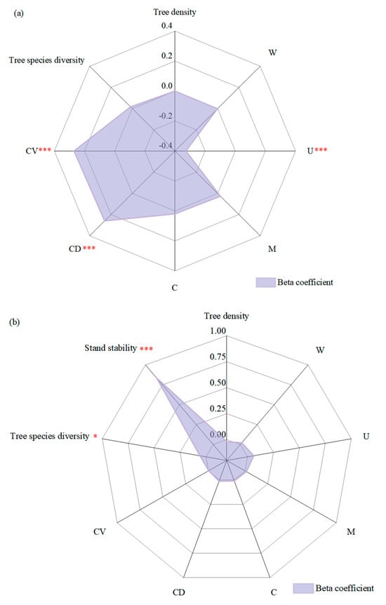3.3. Determinants Driving Stand Stability and Carbon Storage