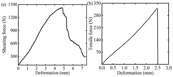 Load displacement curve of Caragana korshinskii Kom. branches: (a) shear test; (b) tensile test.