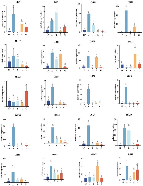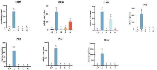 APA StyleChen, C., Niu, Y., Zhang, S., Liu, S., Lin, X., Zong, S., & Tao, J. (2025). Tissue Expression and Characterization of Eogystia hippophaecolus (Lepidoptera: Cossidae) Odorant Receptors. Forests, 16(1), 98. https://doi.org/10.3390/f16010098