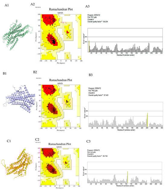 2.7. EhipPR1–3 Protein Modeling and Molecular Docking