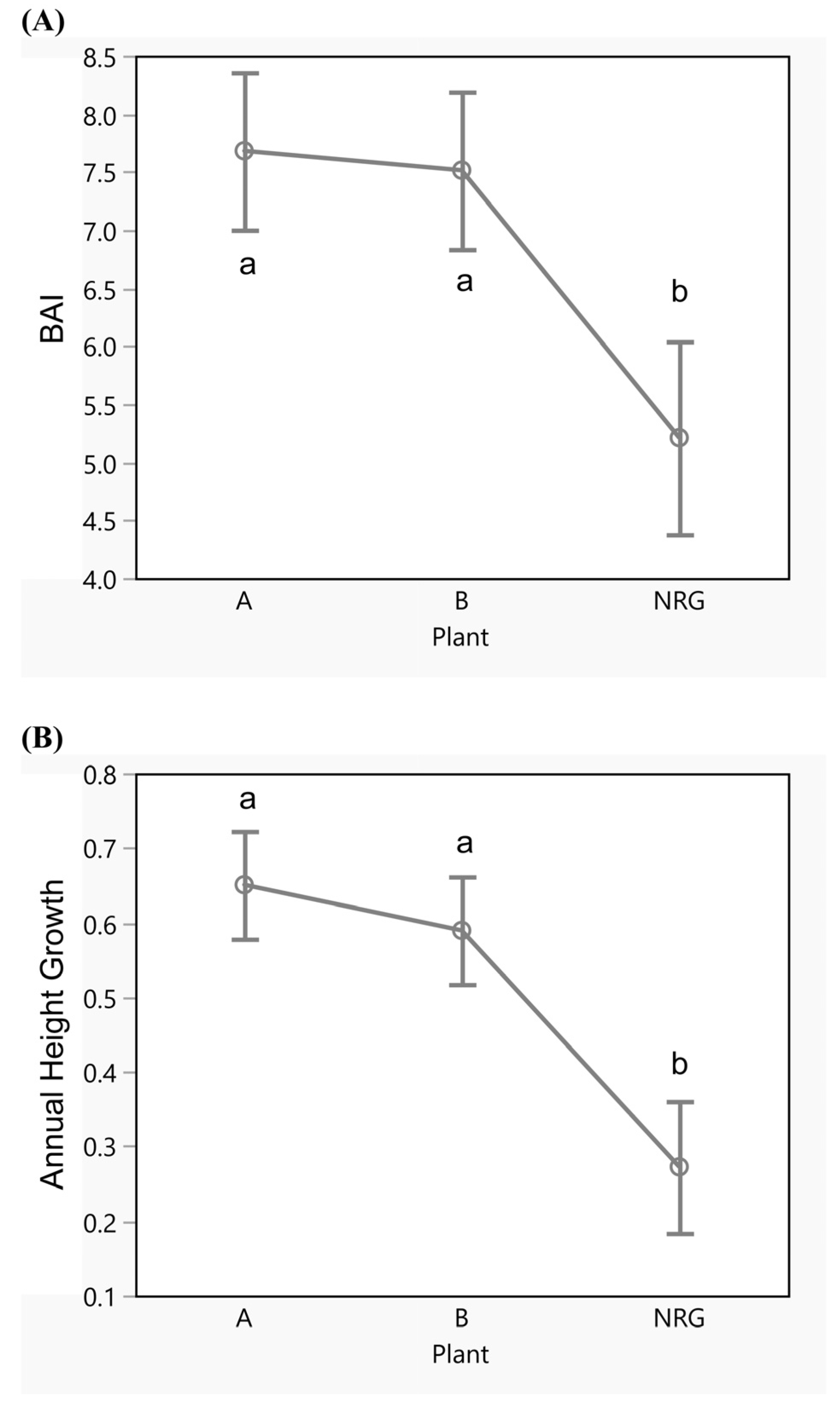 | BAI before thinning | 1126.333 + (−889.7403 * TrtNRG) | 0.5446 |