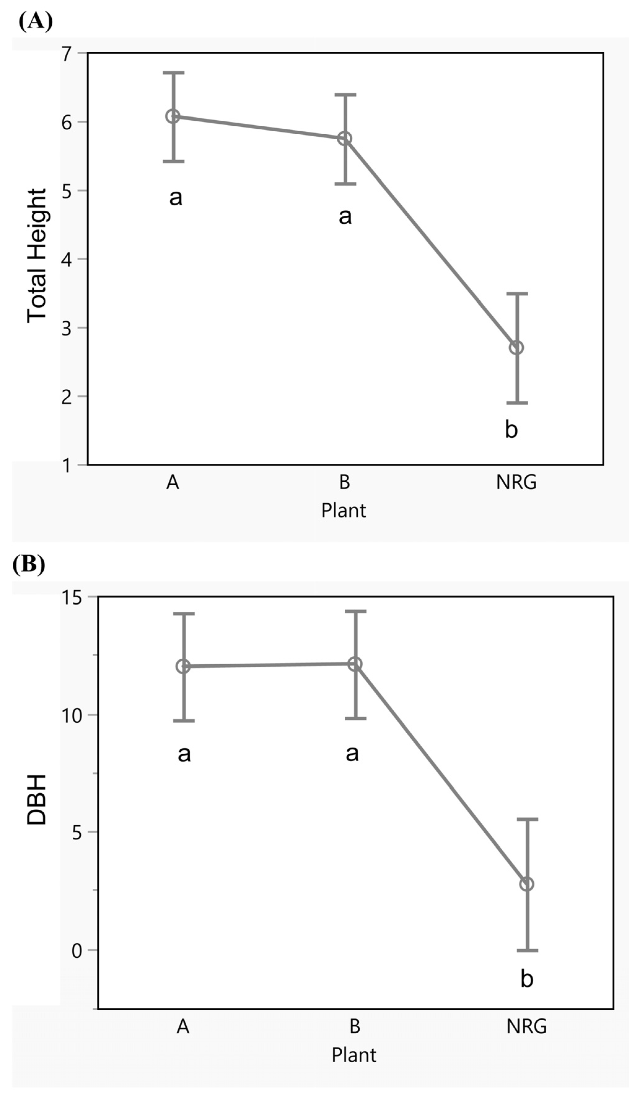 | Height growth before thinning | 0.3270 + (0.0008 * Aspect) + (−0.1745 * TrtNRG) | 0.6390 |