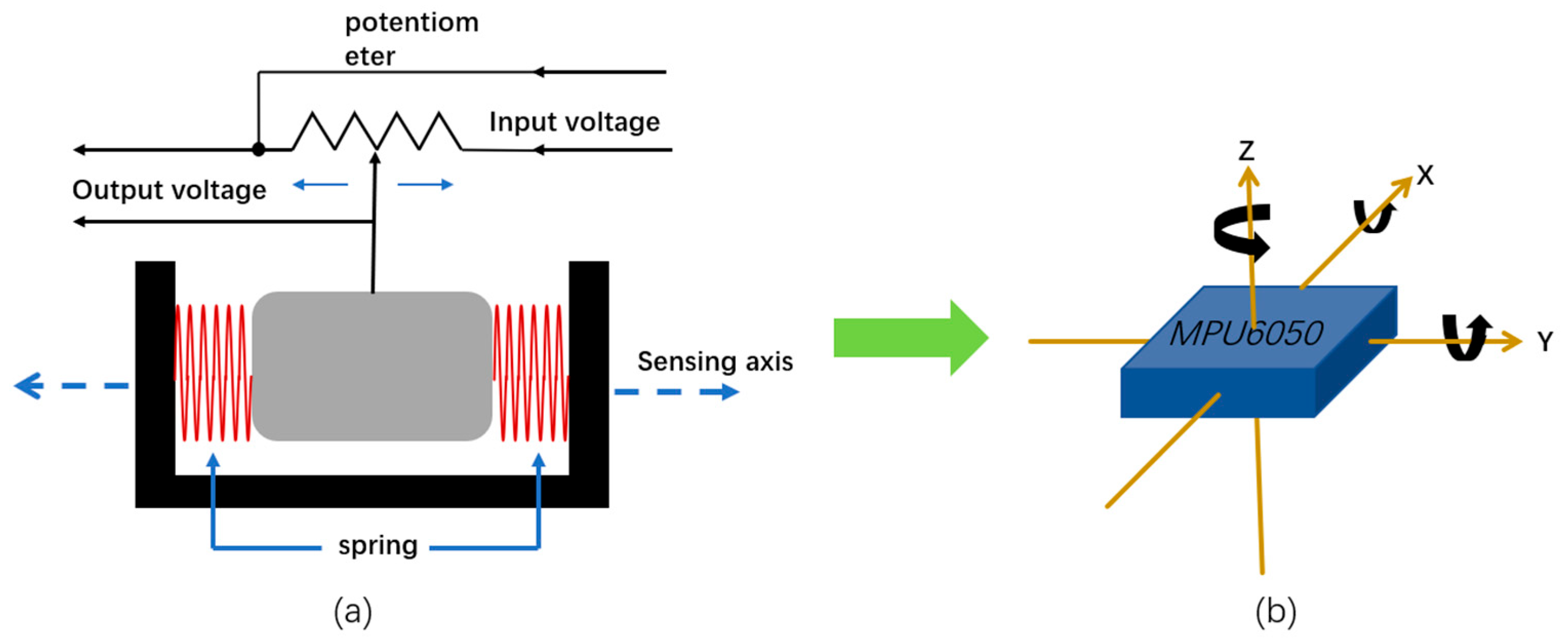 - Huang, J. Design of angle detection system based on MPU6050. In Proceedings of the 7th International Conference on Education, Management, Information and Computer Science (ICEMC 2017), Shenyang, China, 16–18 June 2016. [Google Scholar]