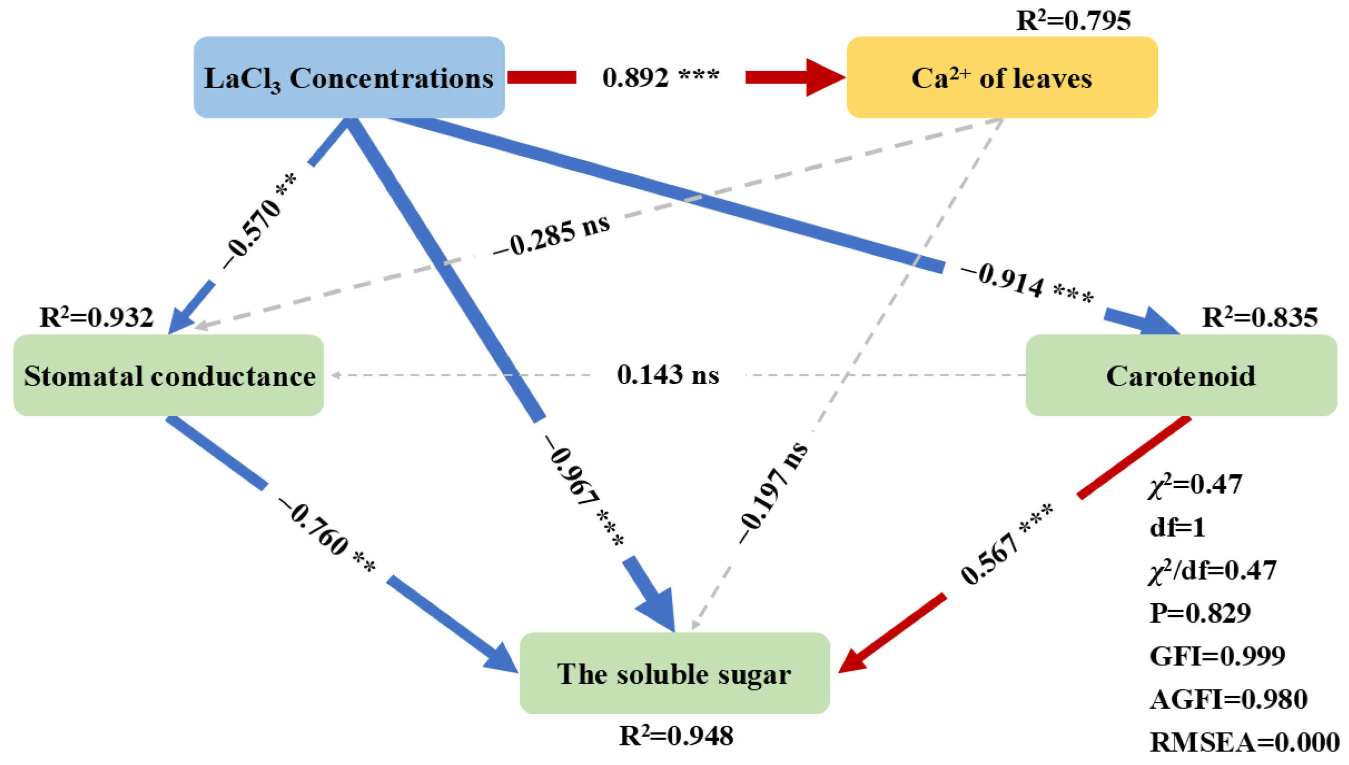 4.2. The Inhibitory Effect of LaCl3 on Photosynthesis and Its Mechanism