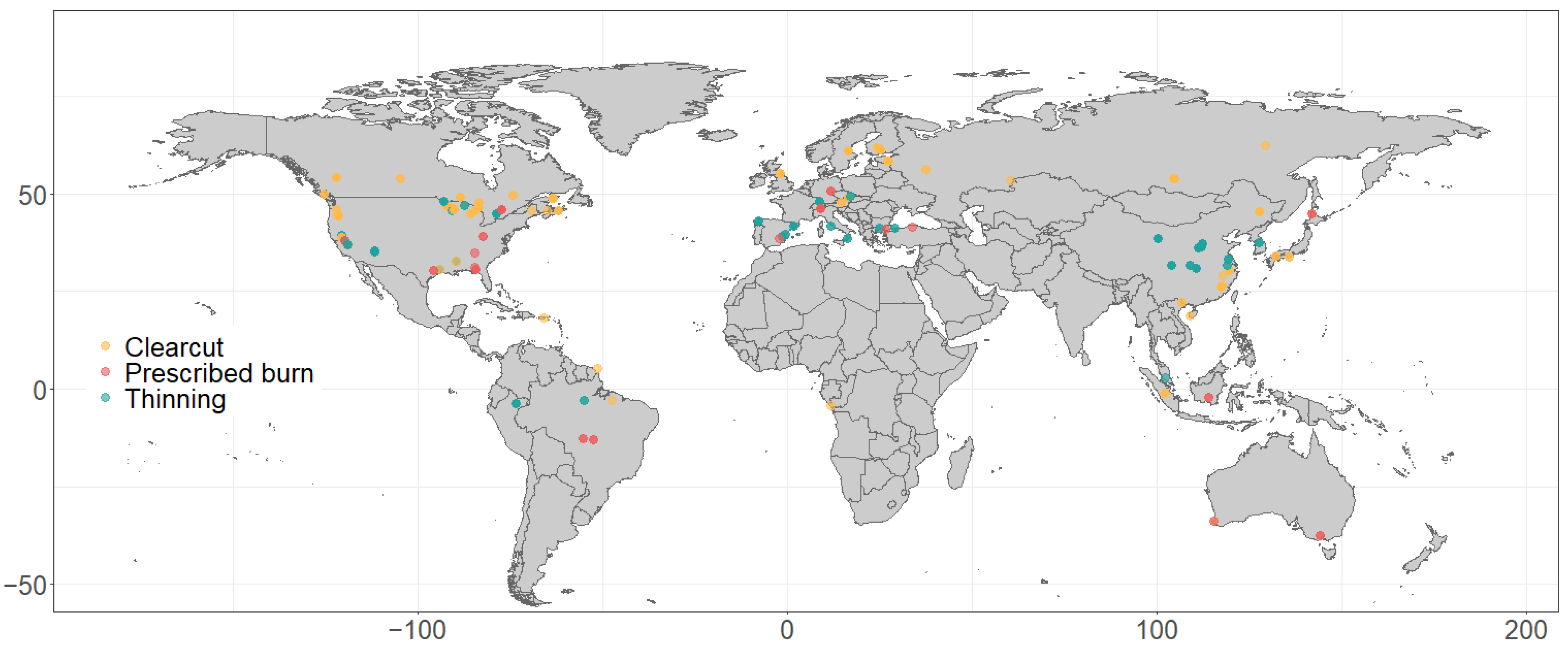 APA StyleOno, M., & Noormets, A. (2025). Impacts of Harvesting and Prescribed Burning on Forest Soil Carbon Dynamics: A Global Meta-Analysis. Forests, 16(10), 1555. https://doi.org/10.3390/f16101555