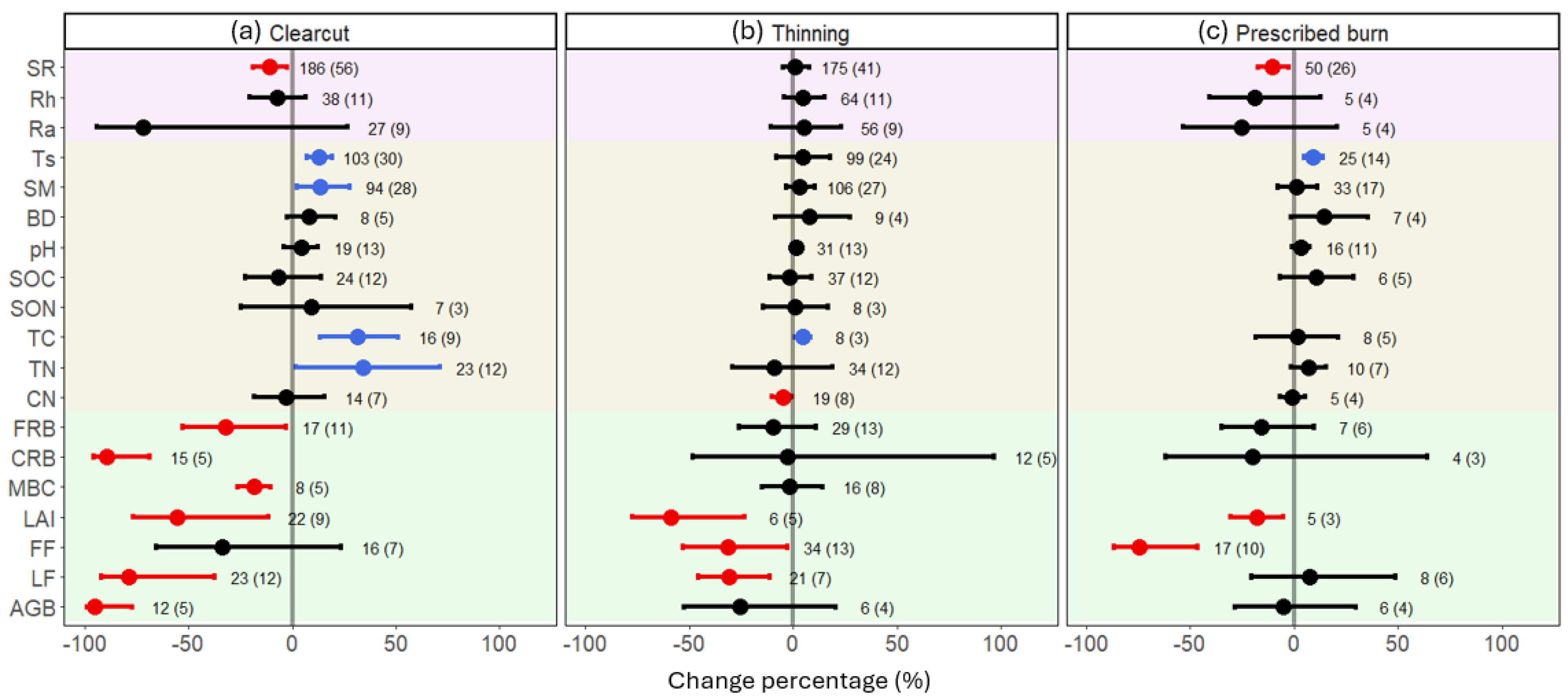 Ono, M.; Noormets, A. Impacts of Harvesting and Prescribed Burning on Forest Soil Carbon Dynamics: A Global Meta-Analysis. Forests 2025, 16, 1555. https://doi.org/10.3390/f16101555
