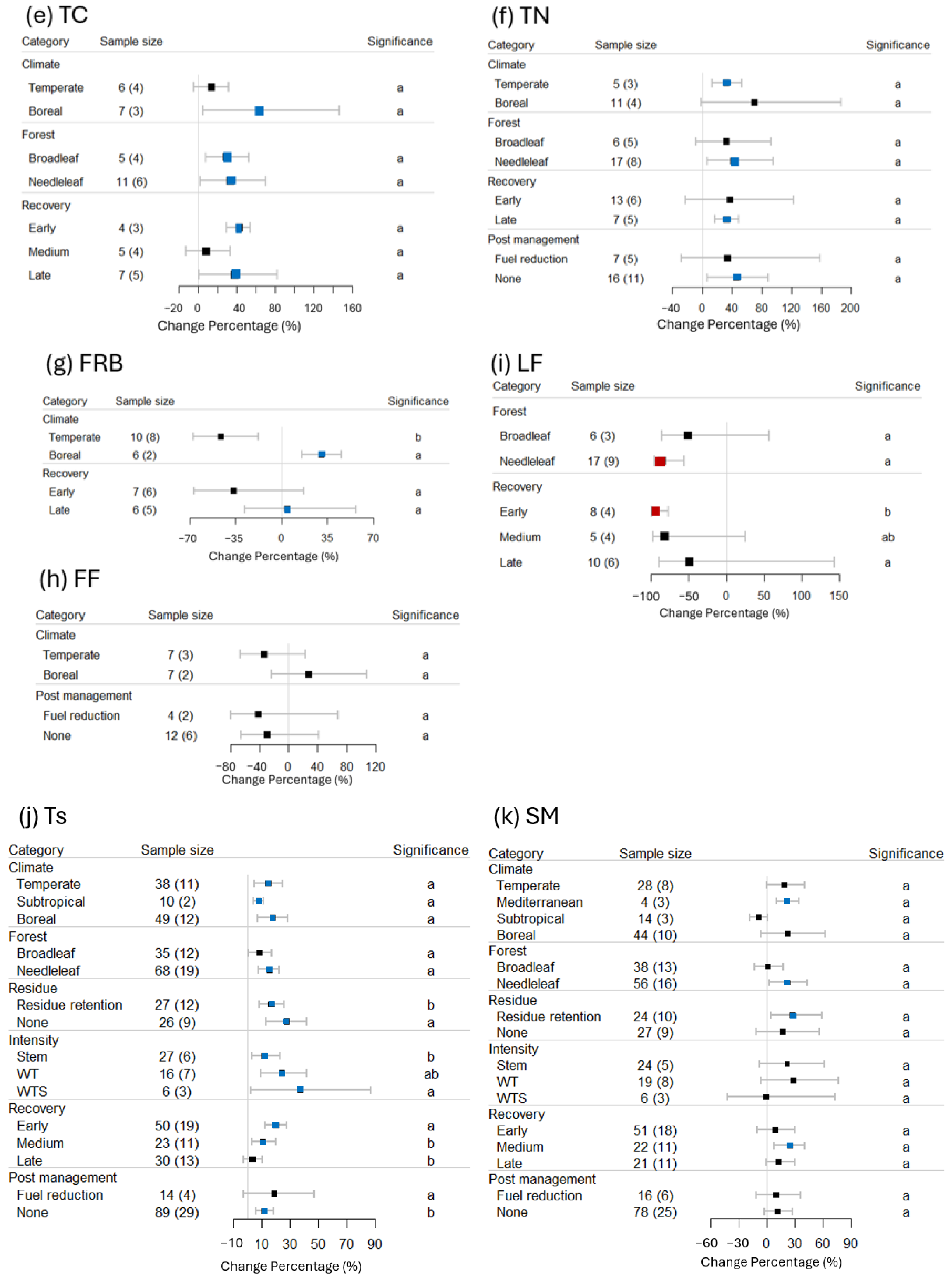 - Gundale, M.J.; Axelsson, E.P.; Buness, V.; Callebaut, T.; DeLuca, T.H.; Hupperts, S.F.; Ibáñez, T.S.; Metcalfe, D.B.; Nilsson, M.-C.; Peichl, M.; et al. The biological controls of soil carbon accumulation following wildfire and harvest in boreal forests: A review. Glob. Change Biol. 2024, 30, e17276. [Google Scholar] [CrossRef] [PubMed]