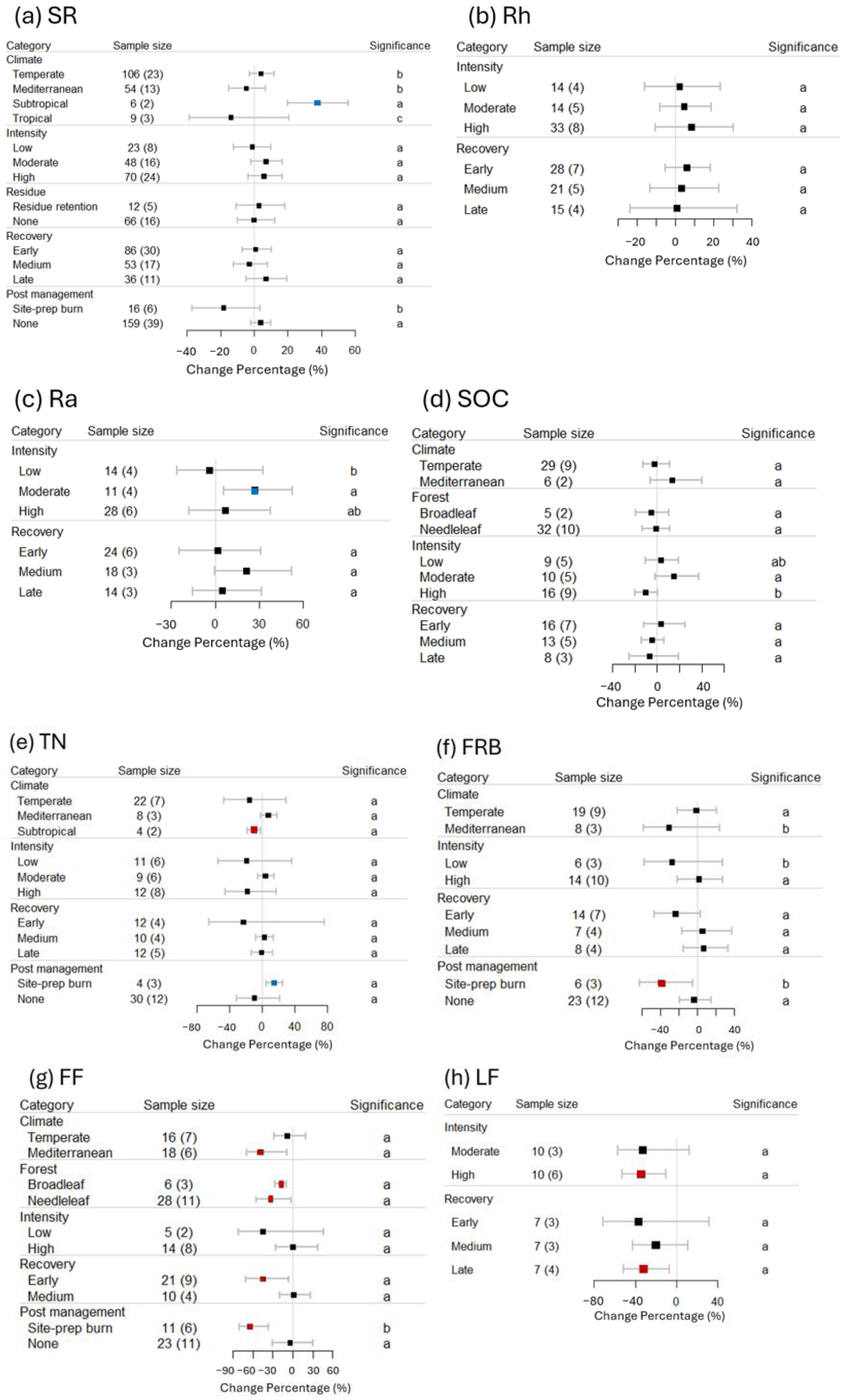 - Akande, O.J.; Ma, Z.L.; Huang, C.Y.; He, F.L.; Chang, S.X. Meta-analysis shows forest soil CO2 effluxes are dependent on the disturbance regime and biome type. Ecol. Lett. 2023, 26, 765–777. [Google Scholar] [CrossRef]