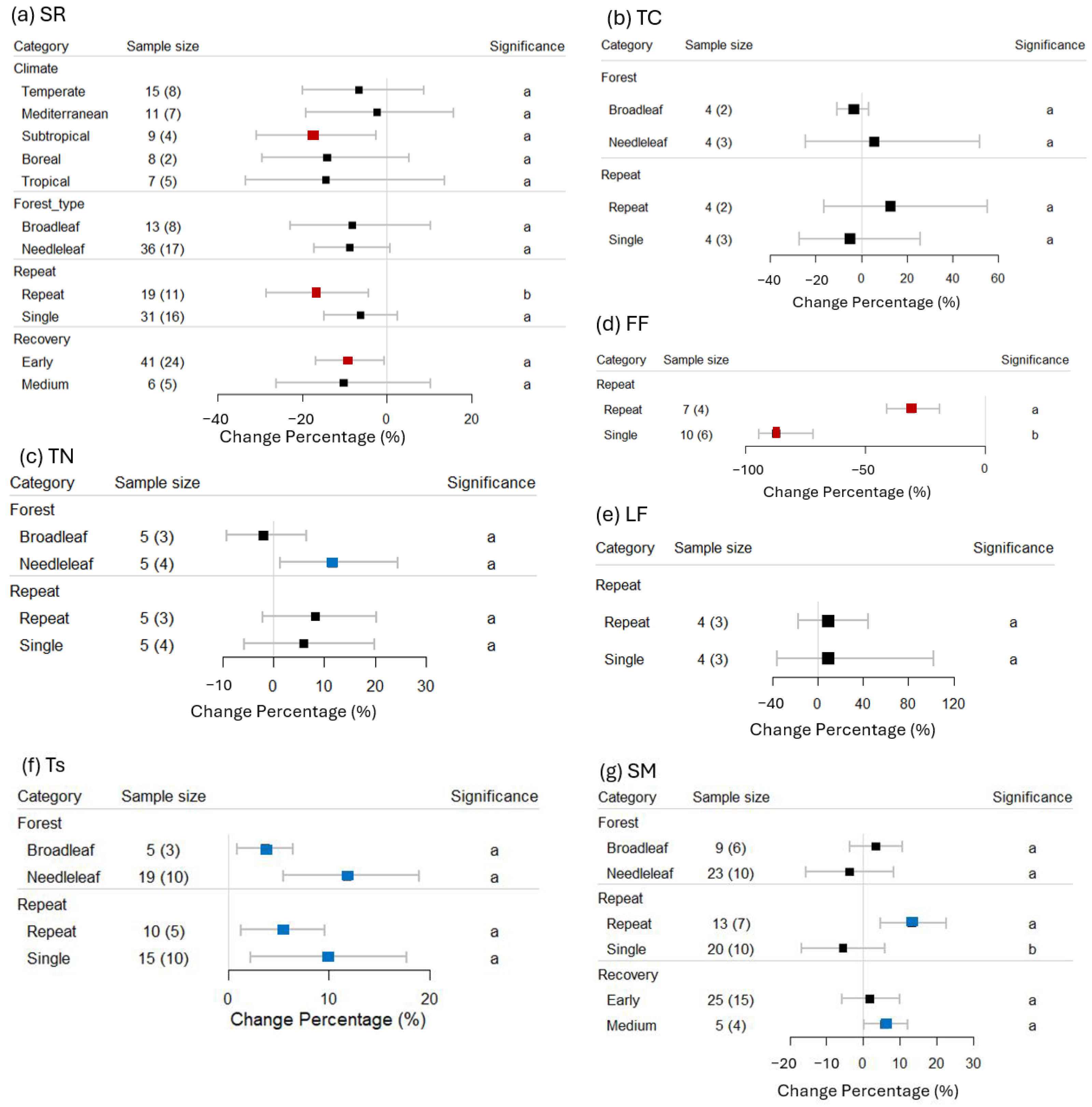 - Gui, H.; Wang, J.; Hu, M.; Zhou, Z.; Wan, S. Impacts of fire on soil respiration and its components: A global meta-analysis. Agric. For. Meteorol. 2023, 336, 109496. [Google Scholar] [CrossRef]