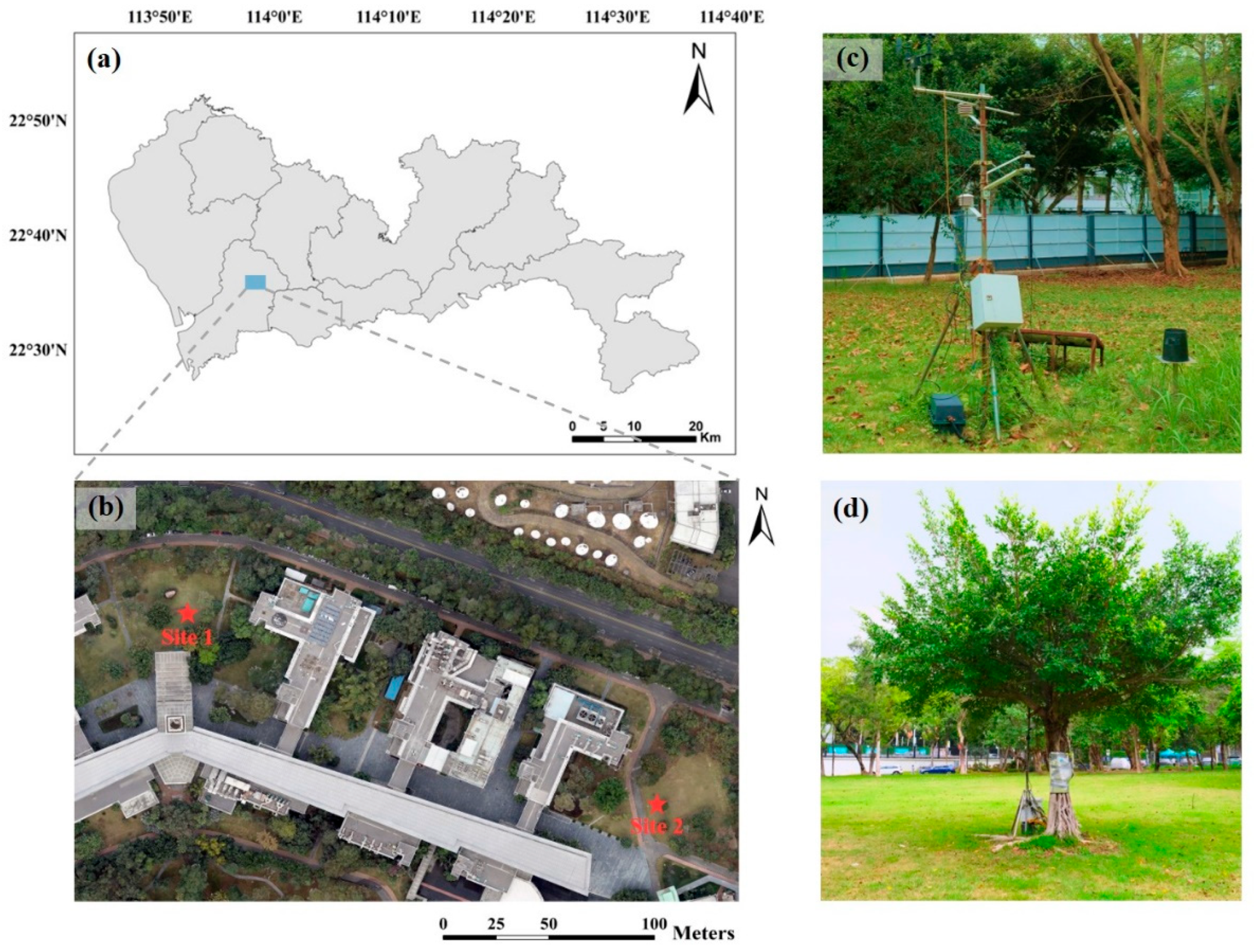 - Hayat, M.; Xiang, J.; Yan, C.; Xiong, B.; Wang, B.; Qin, L.; Saeed, S.; Hussain, A.; Zou, Z.; Qiu, G.Y. Environmental control on transpiration and its cooling effect of Ficus concinna in a subtropical city Shenzhen, southern China. Agric. For. Meteorol. 2022, 312, 108715. [Google Scholar] [CrossRef]