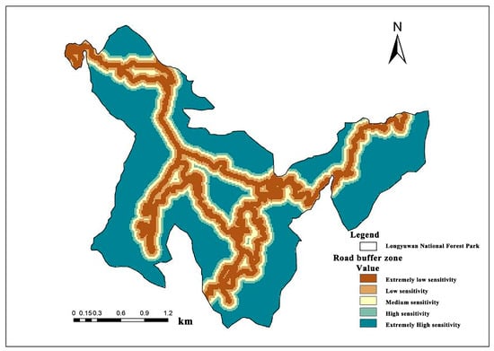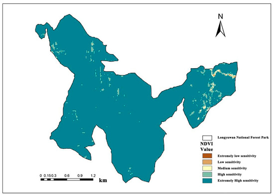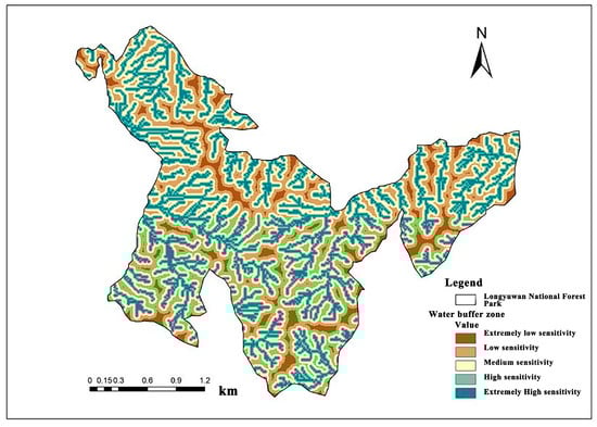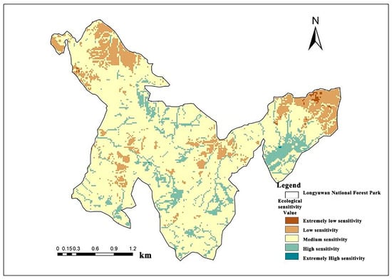 Comprehensive evaluation of ecological sensitivity in Longyuwan National Forest Park.