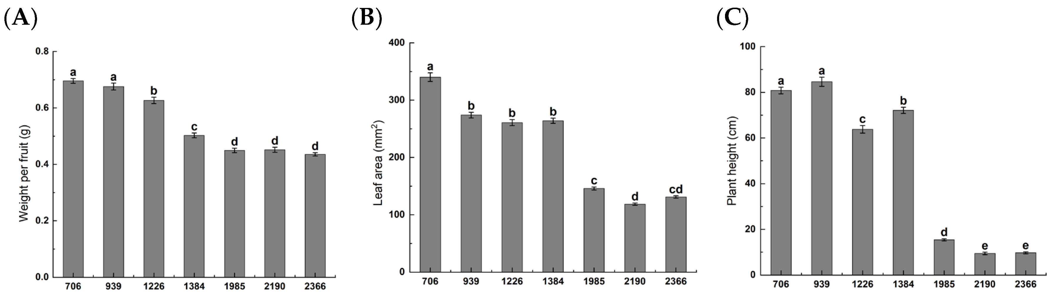 - Kortstee, A.; Appeldoorn, N.; Oortwijn, M.; Visser, R. Differences in regulation of carbohydrate metabolism during early fruit development between domesticated tomato and two wild relatives. Planta 2007, 226, 929–939. [Google Scholar] [CrossRef]