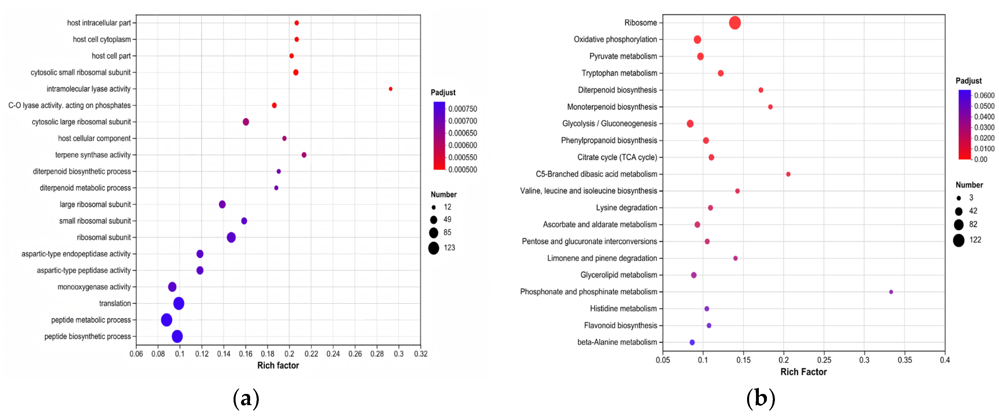 3.4. GO and KEGG Enrichment Analysis of Differentially Expressed Genes (DEGs)