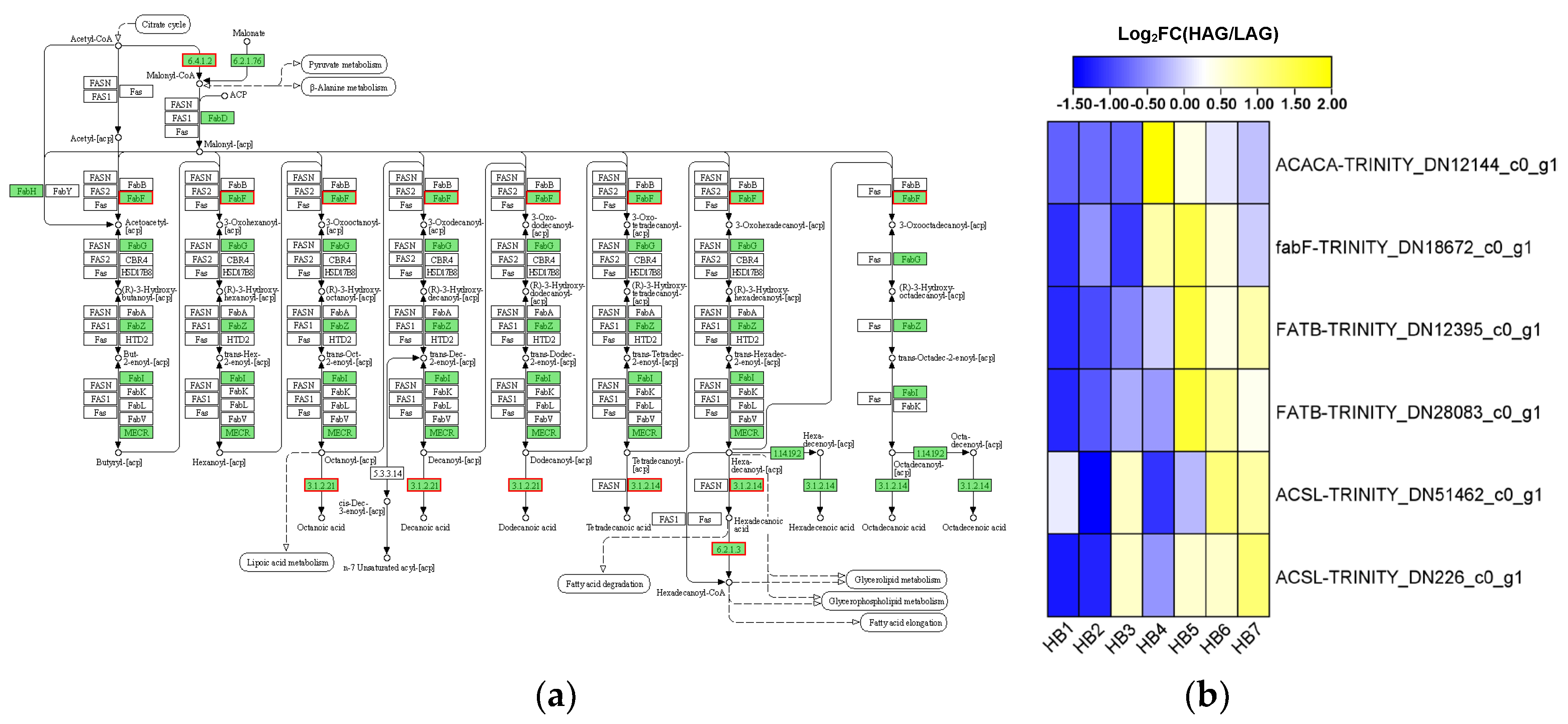 3.9. Analysis of DEGs Associated with Lipid Metabolism