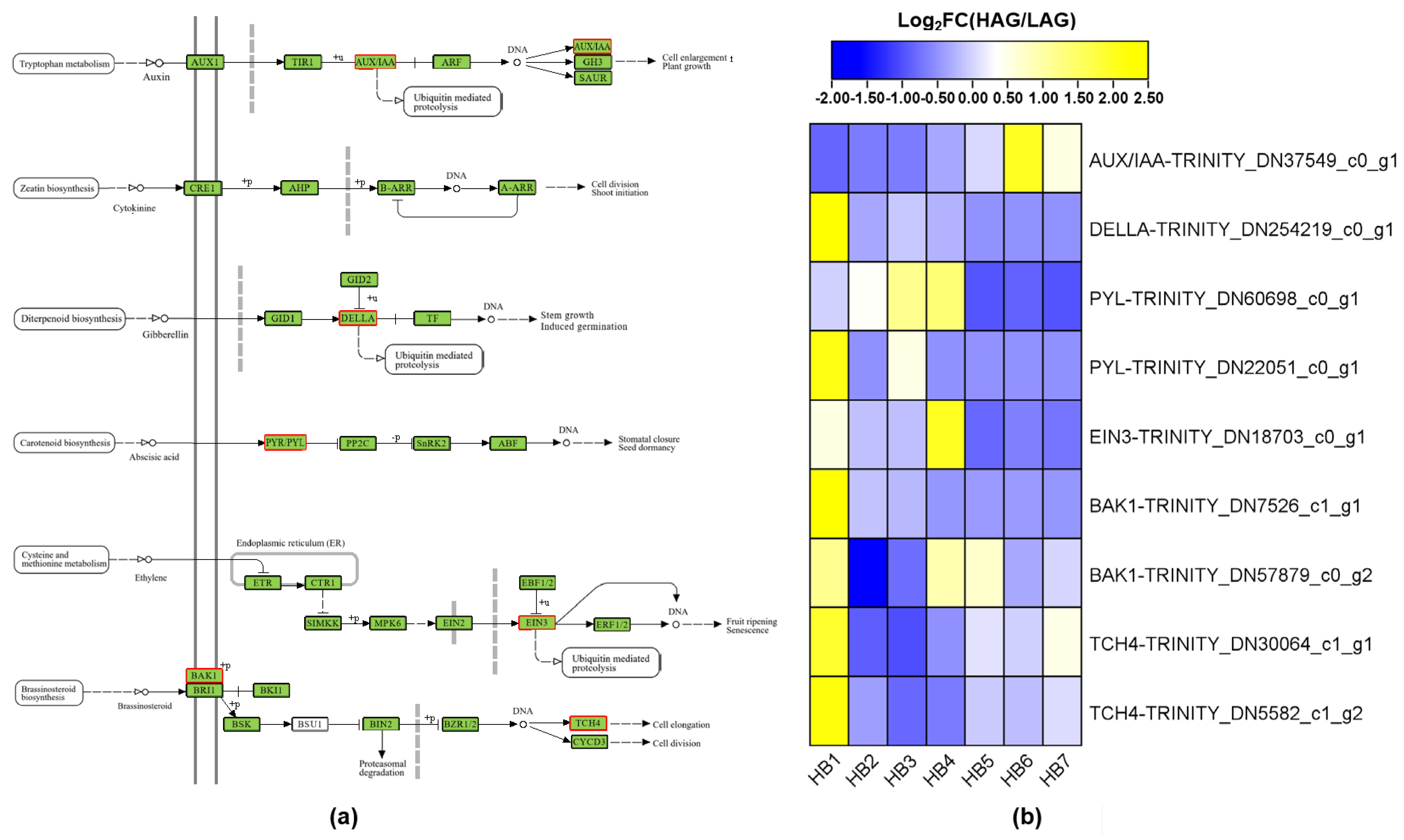 3.10. Analysis of DEGs Related to Plant Hormone Signal Transduction