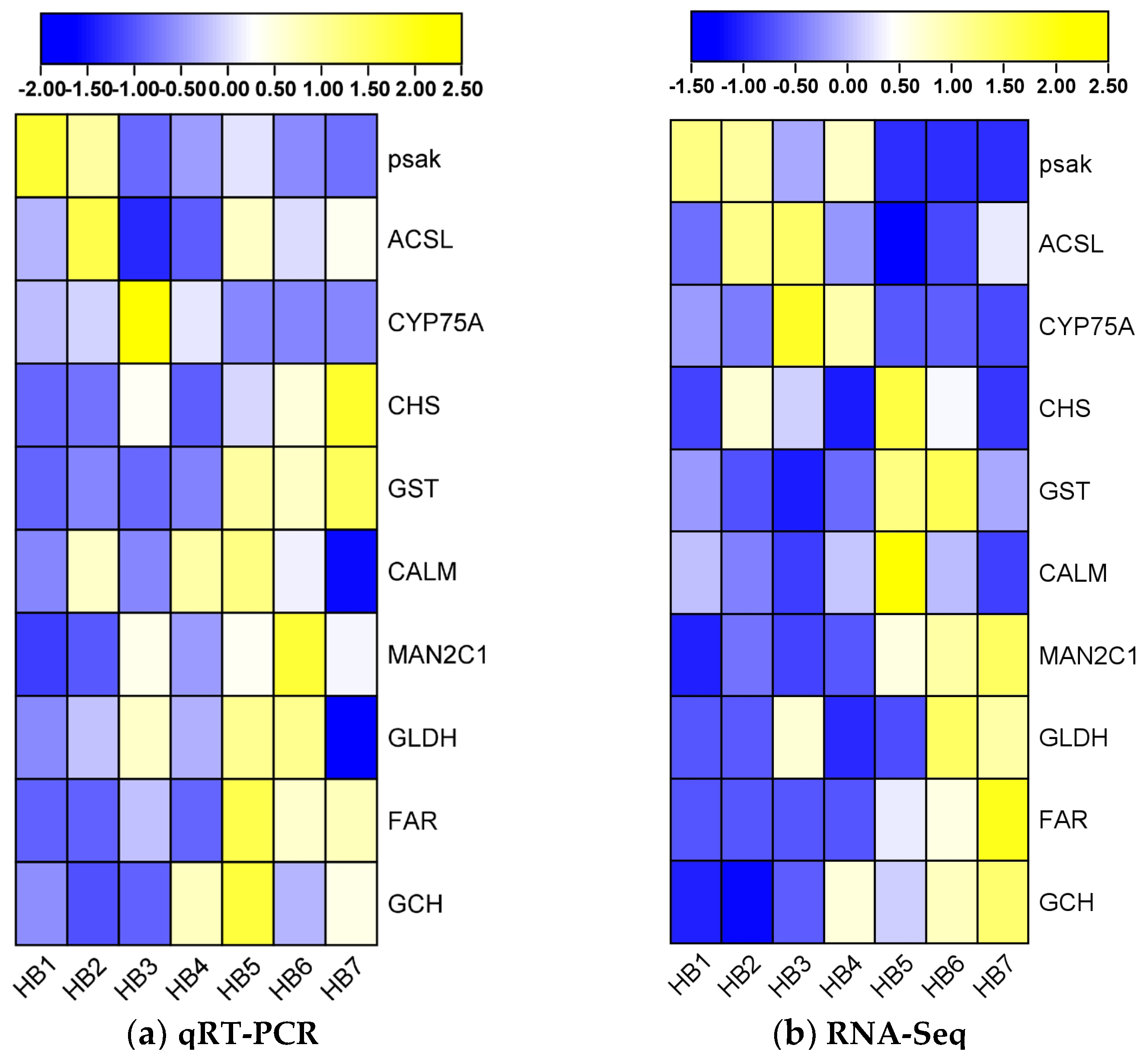 - Love, M.I.; Huber, W.; Anders, S. Moderated estimation of fold change and dispersion for RNA-seq data with DESeq2. Genome Biol. 2014, 15, 550. [Google Scholar] [CrossRef] [PubMed]