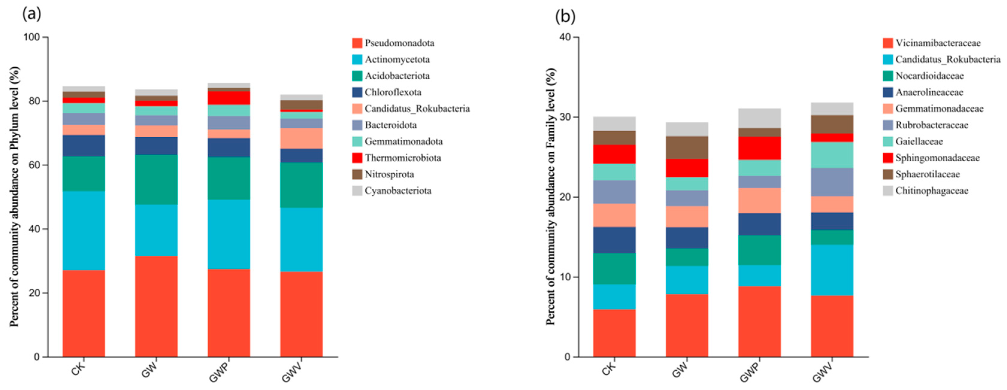 - Zhou, W.; Sun, X.; Li, S.; Qu, B.; Zhang, J. How organic mulching influences the soil bacterial community structure and function in urban forests. Microorganisms 2024, 12, 520. [Google Scholar] [CrossRef]