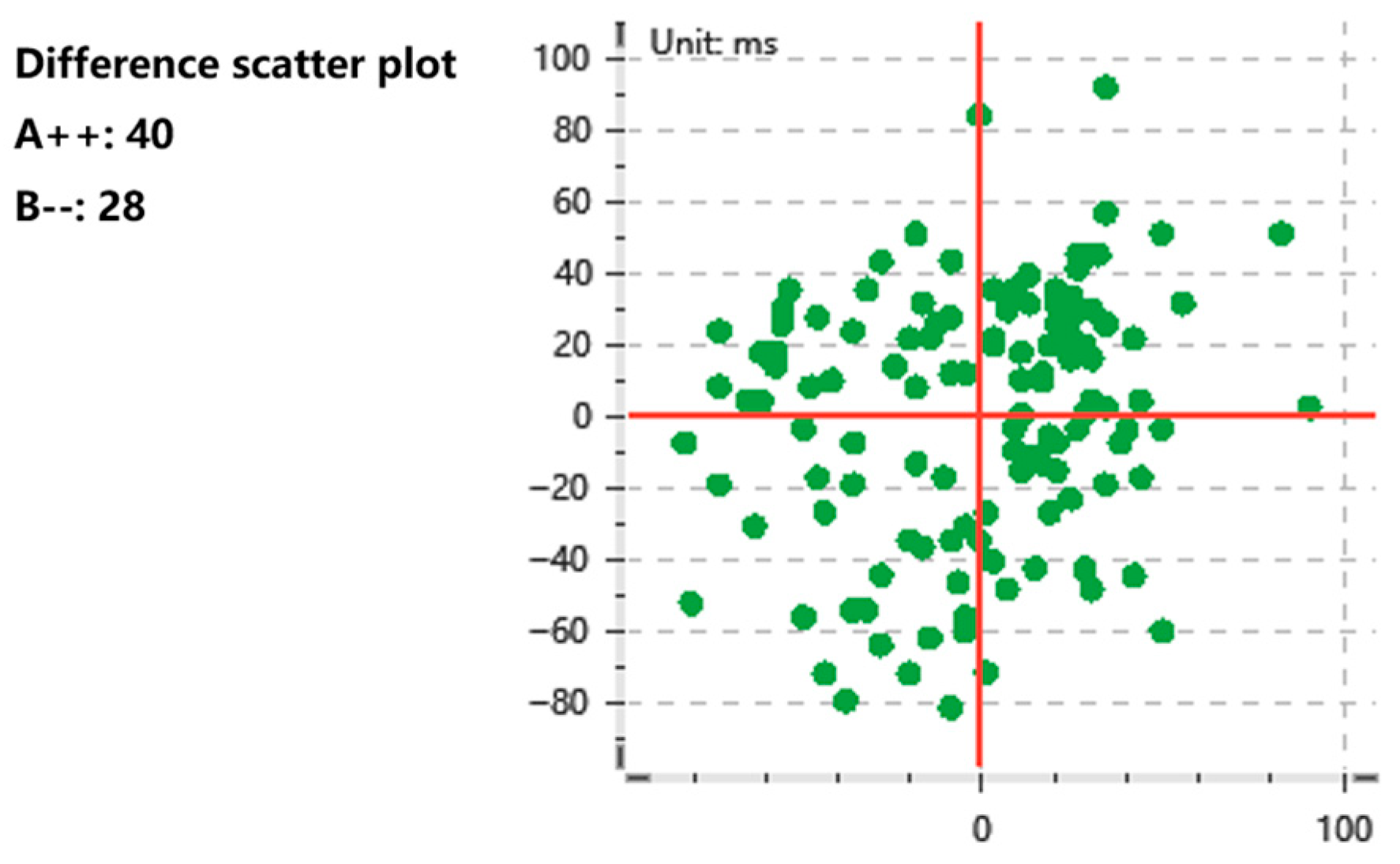A++ | | Number of points in the first quadrant of the difference scatter plot. |