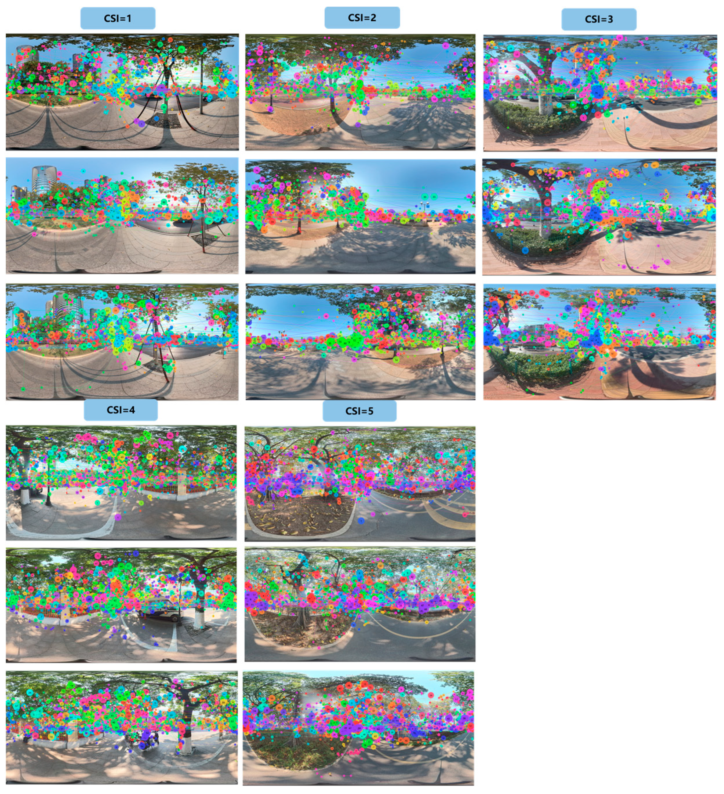 As the CSI serves as the primary variable considered in this study, we designed five canopy environment classes in the experiment, classified according to CSI values as follows (