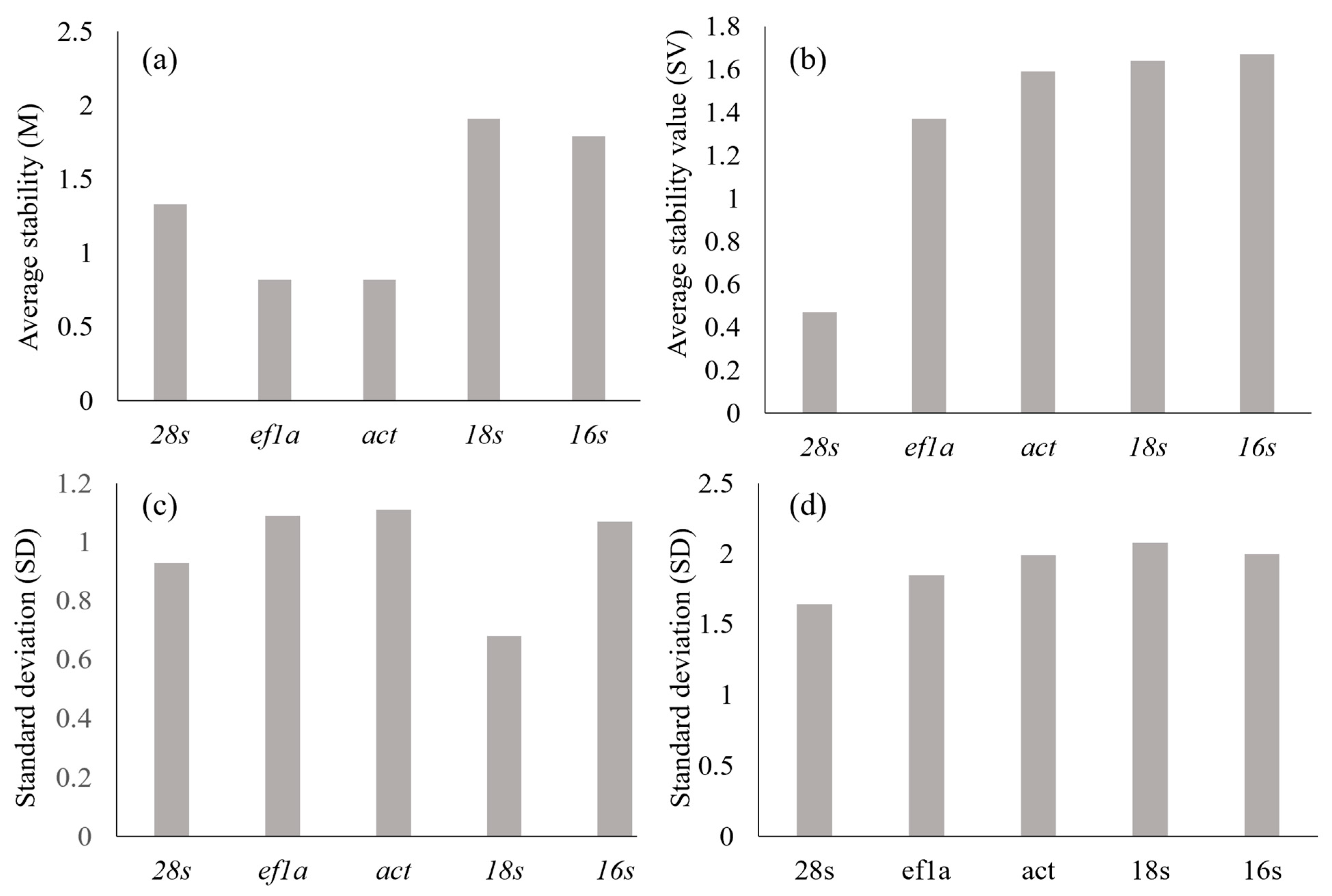 - Wallace, M.; Rieske, L.K. Validation of reference genes for quantitative PCR in the forest pest, Ips calligraphus. Sci. Rep. 2021, 11, 23523. [Google Scholar] [CrossRef]