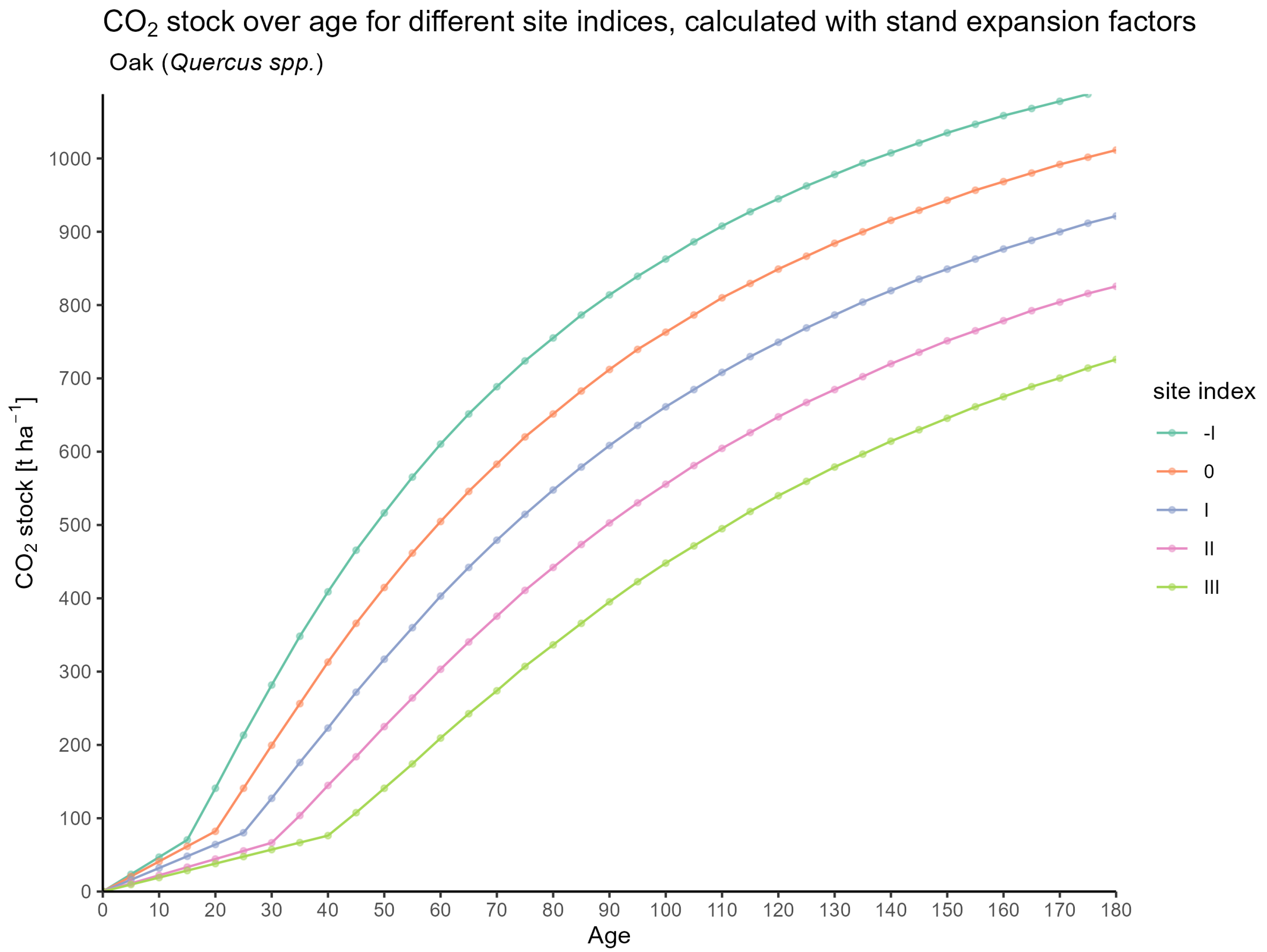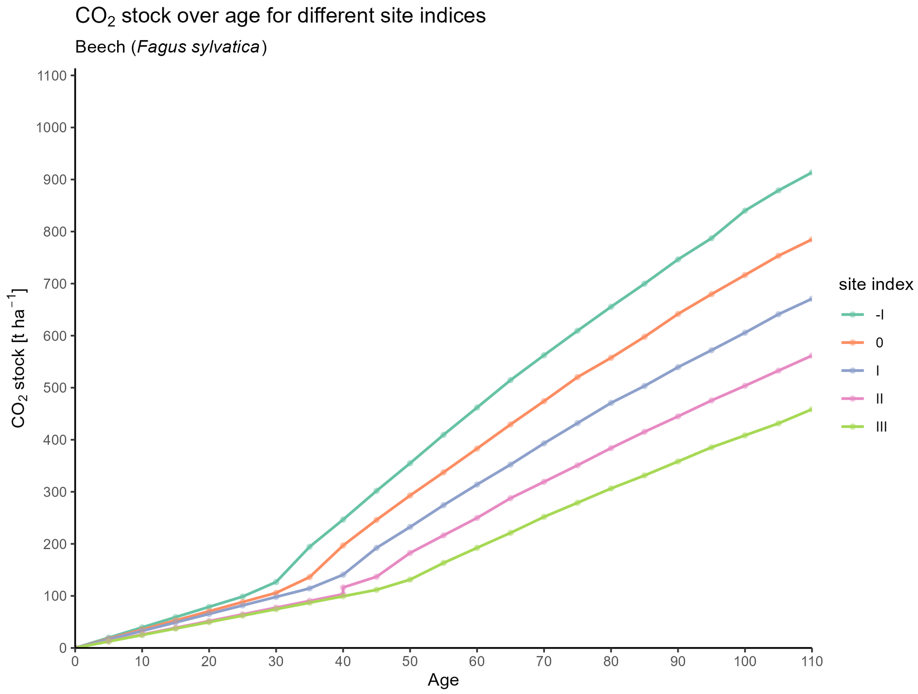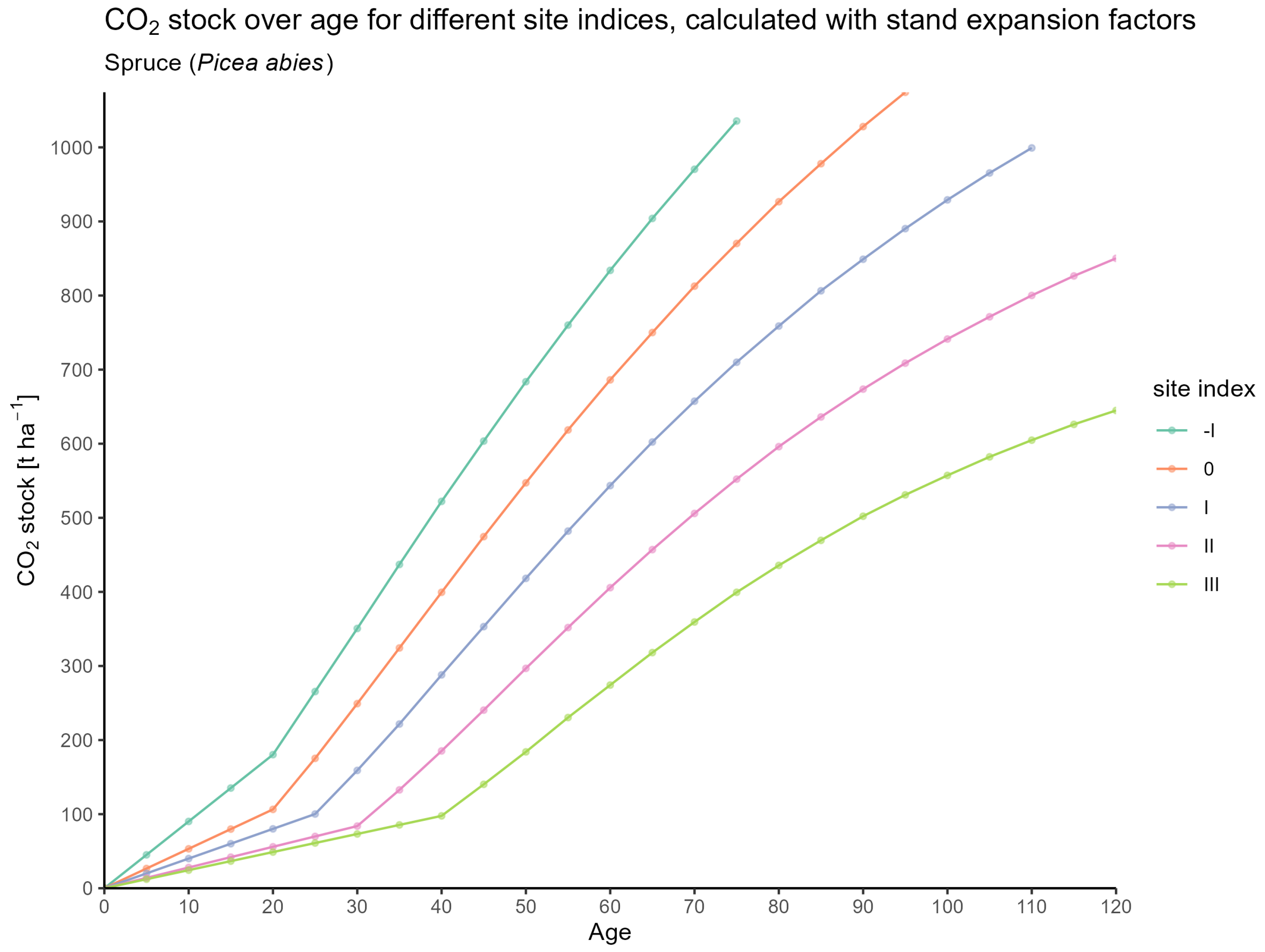 | Age | SI | N | H | H100 | BA | dbh | dbh100 | S | N_YFT | BA_YFT | dbh_YFT | S_YFT | CAI | TVP | MAI | ABV_CO2_SINGLE | ABV_CO2_YFT_SINGLE | ROOT_CO2_SINGLE | ROOT_CO2_YFT_SINGLE | FULL_TREE_CO2 | STAND_CO2 | FULL_TREE_CO2_YFT | STAND_CO2_YFT | TVP_CO2 | MAI_CO2 | CAI_CO2 |