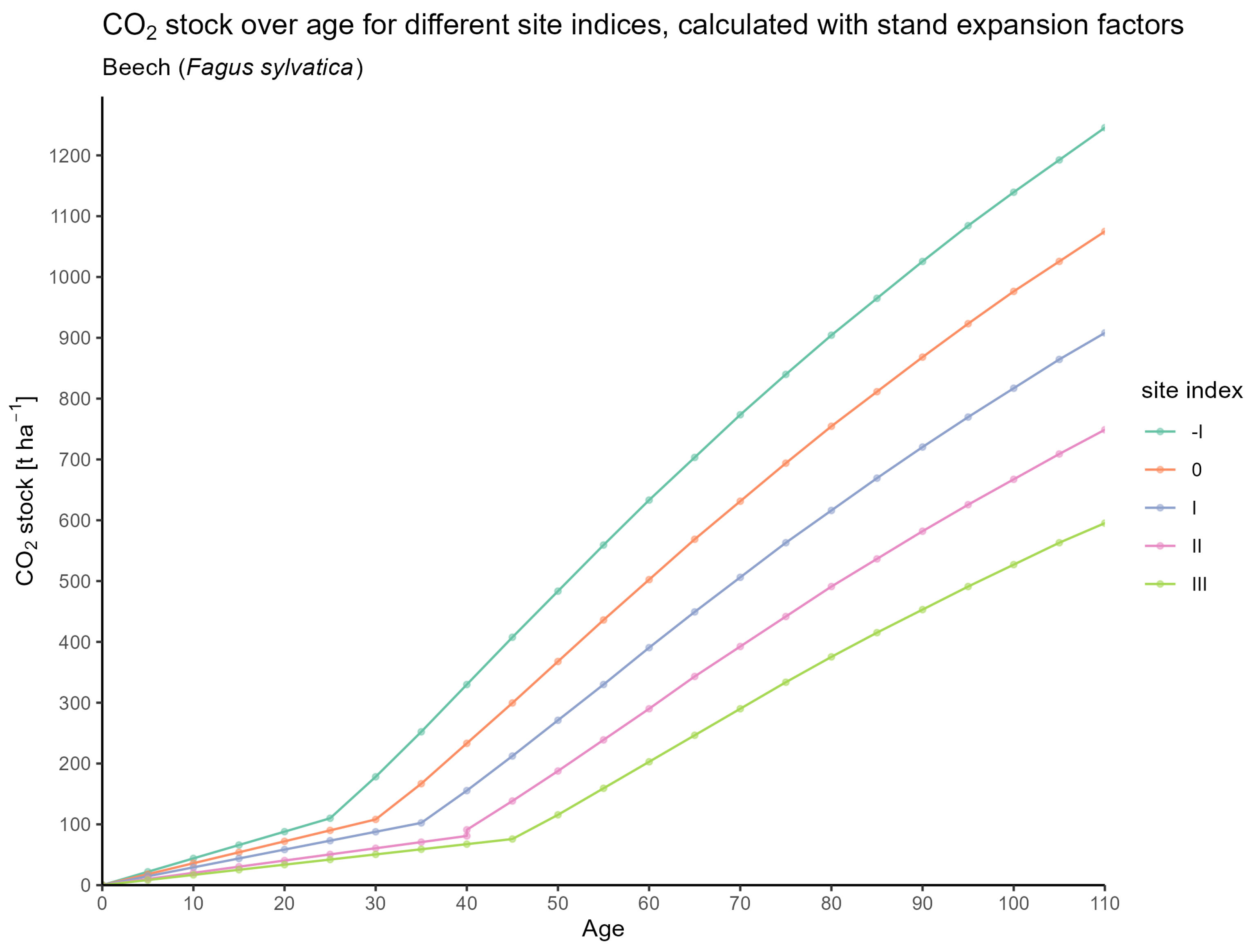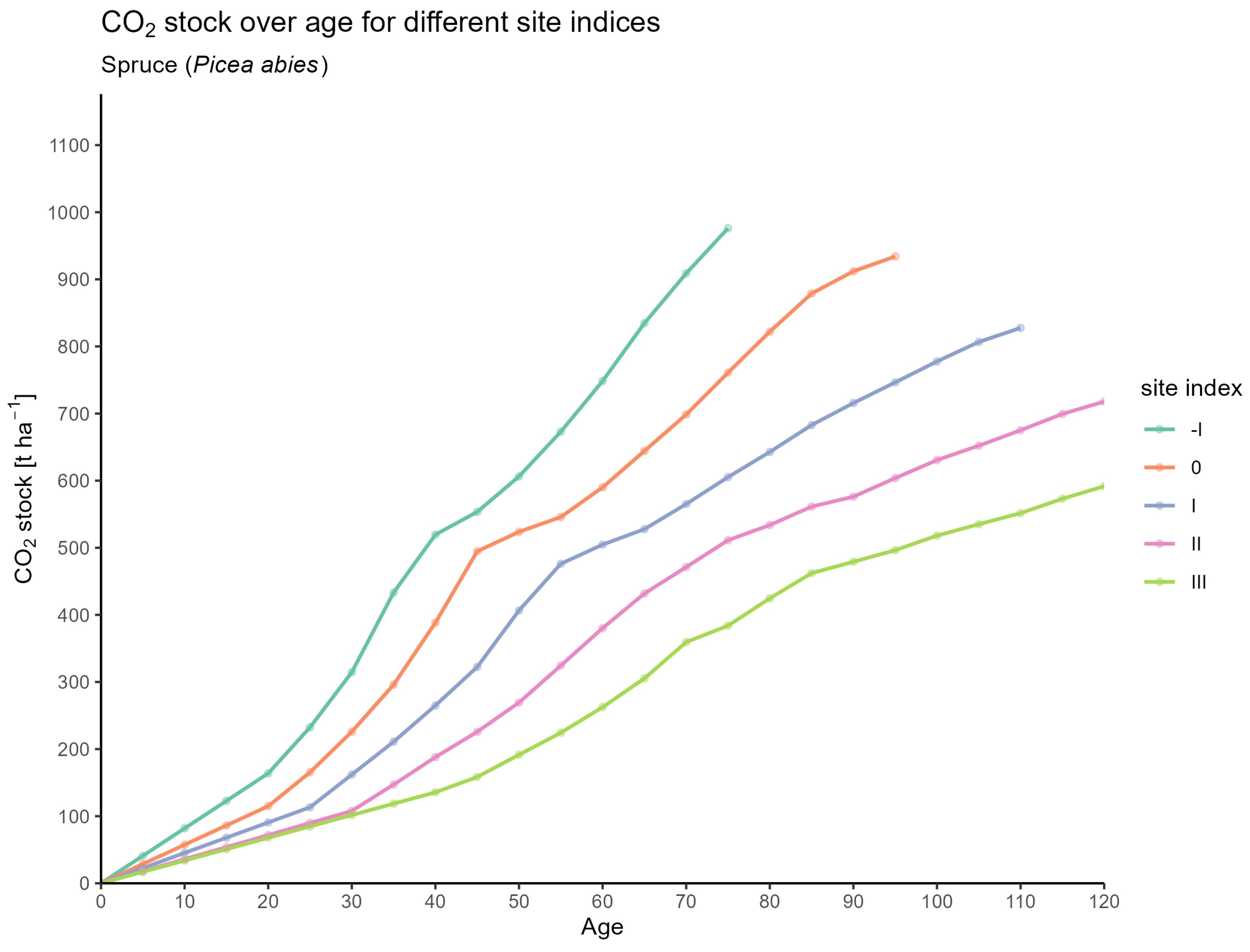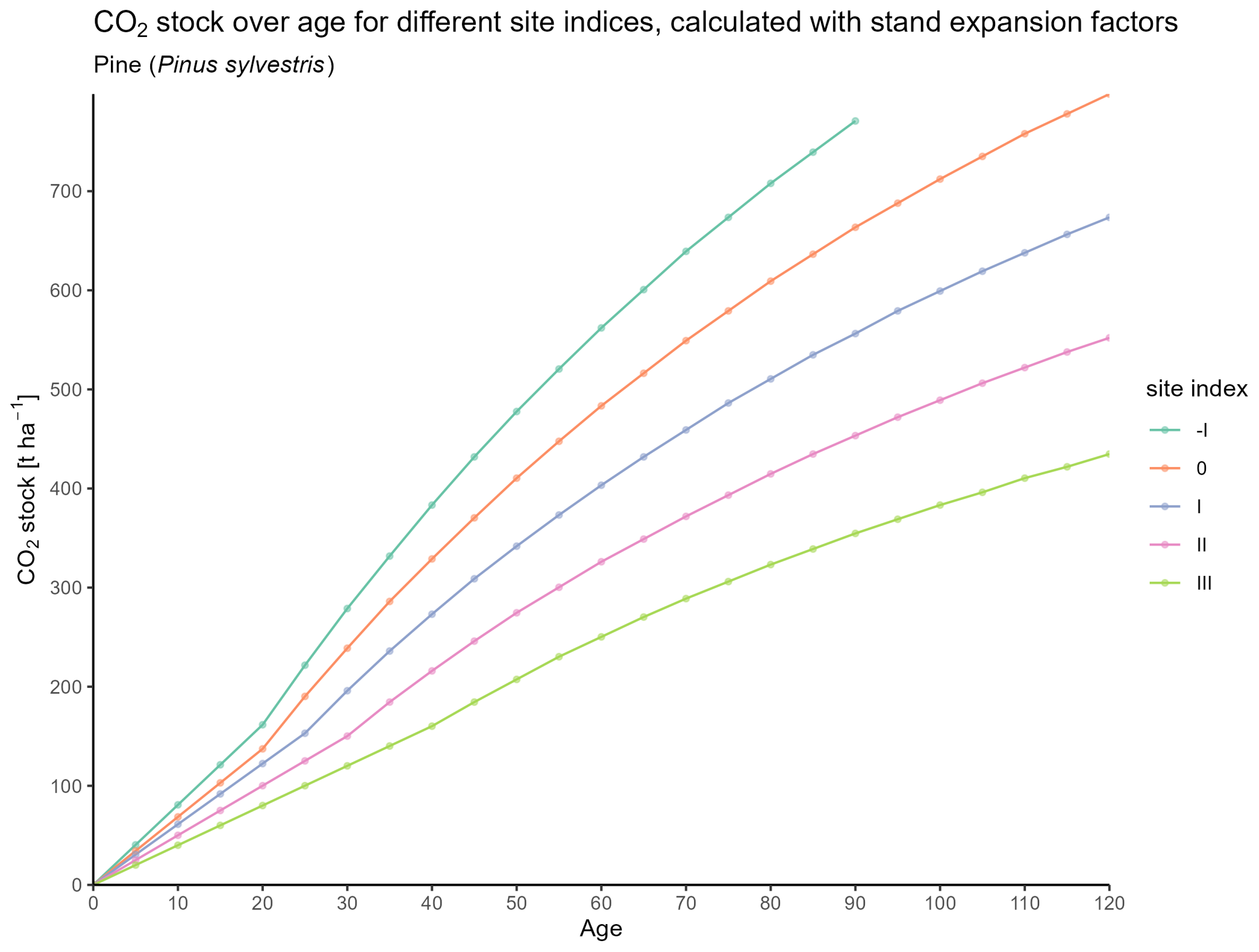 | Age | SI | N | H | H100 | BA | dbh | dbh100 | S | N_YFT | BA_YFT | dbh_YFT | S_YFT | CAI | TVP | MAI | ABV_CO2_SINGLE | ABV_CO2_YFT_SINGLE | ROOT_CO2_SINGLE | ROOT_CO2_YFT_SINGLE | FULL_TREE_CO2 | STAND_CO2 | FULL_TREE_CO2_YFT | STAND_CO2_YFT | TVP_CO2 | MAI_CO2 | CAI_CO2 |