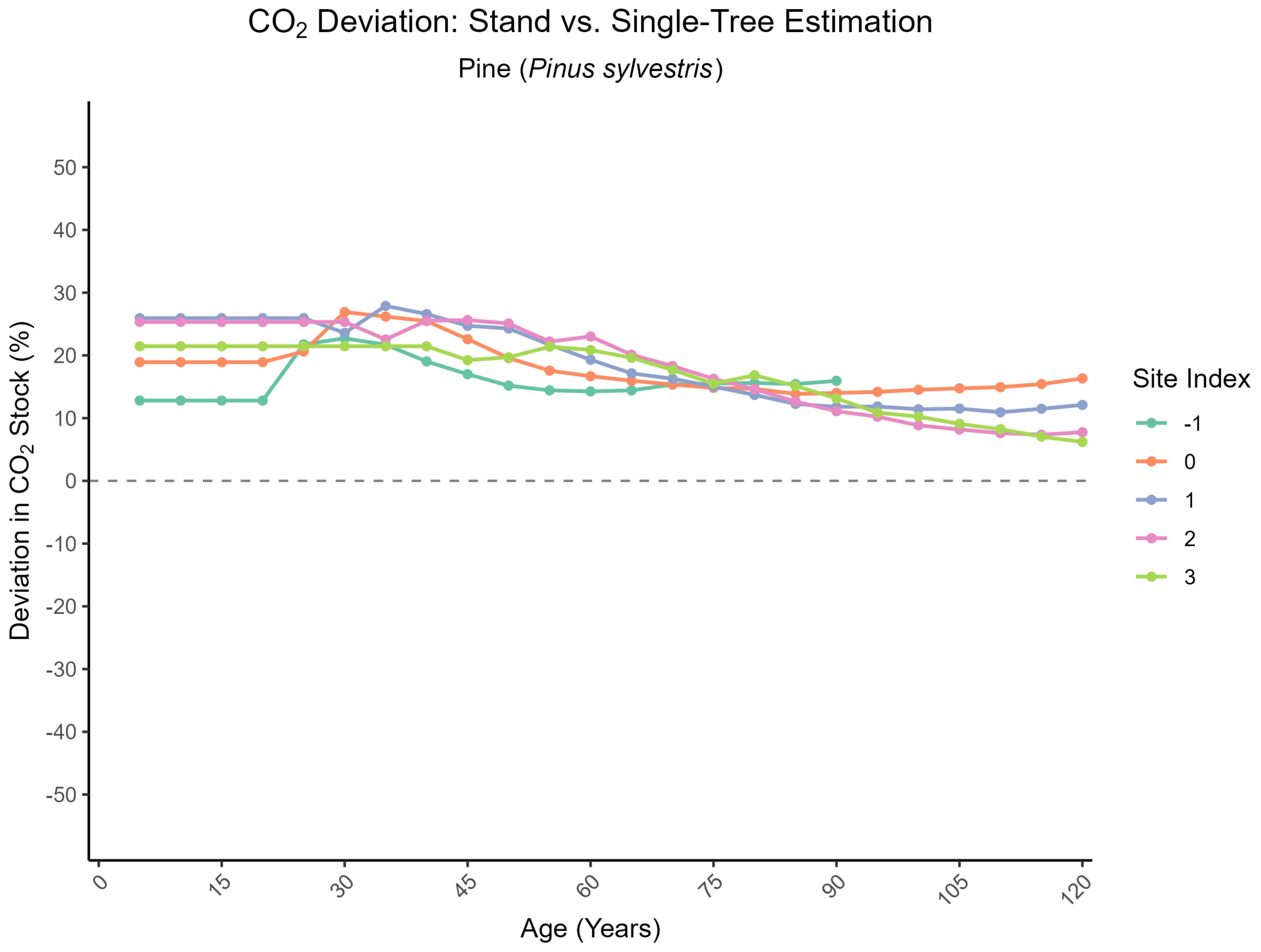- Age: Stand age in years.