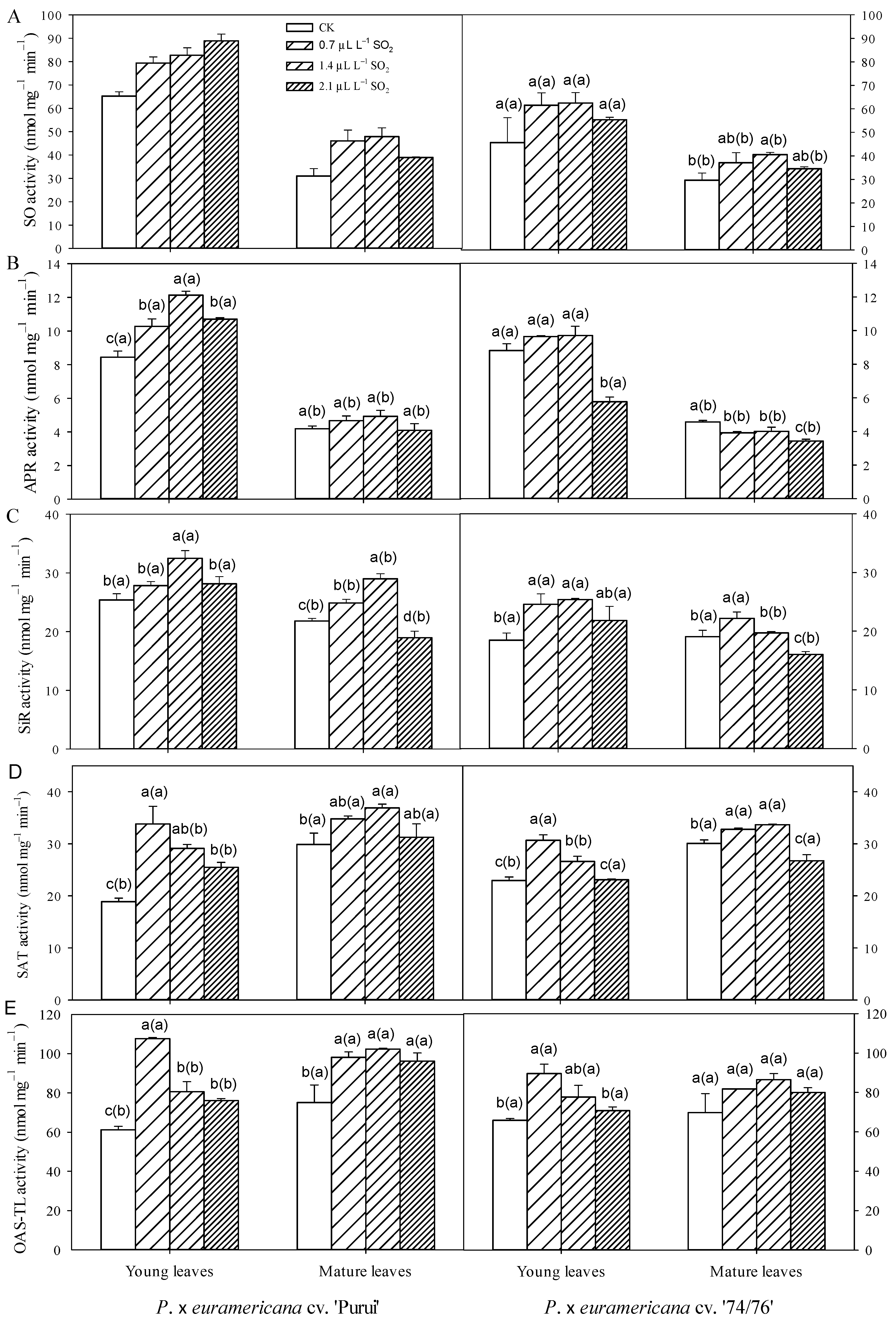 - Feng, J.; Wang, L.; Liu, W.; Wan, X.; Chen, Z.; Zhao, J. Differences in detoxification mechanism and gene expression changes of sulfur metabolism in coping with the air pollutant SO2 between the resistant and ordinary poplar variety. Acta Physiol. Plant 2022, 44, 124. [Google Scholar] [CrossRef]