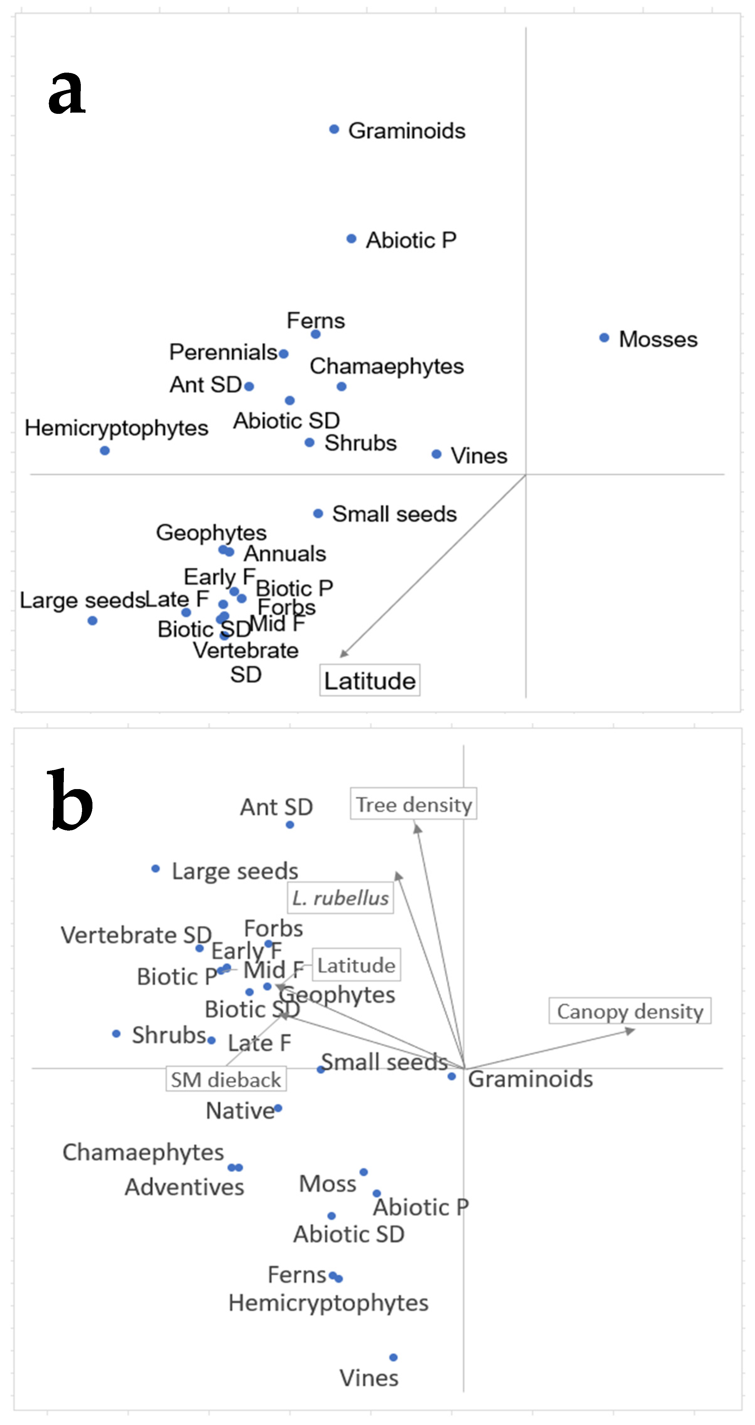 Biotic seed dispersal | −0.679 | −0.415 | - | |