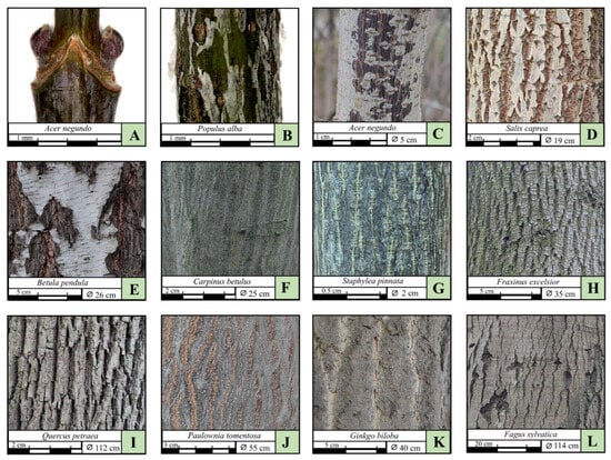 Macroscopic bark characterization is essential for deeper analysis. Bark–broadly defined as the outer covering and associated structures of woody plants–can have diagnostic value, though its characters are less frequently used in species identification. This may be due to the lack of standardized macromorphological definitions [,] and the high variability of bark features []. We believe that if bark-modifying factors are considered, the general bark pattern of a species can be described. A common strategy is to combine bark features with other morphological characters (e.g., buds, habit) for winter tree identification. Many field surveys focus on deciduous stands during winter (in forests, parks, gardens, etc.), where species recognition can be challenging. In many cases, individuals can only be distinguished based on bark characteristics, as the crowns remain positioned within the canopy layer, beyond close inspection. A study investigating misidentification rates demonstrated that error levels in woody species can be remarkably high []. The most significant economic implications of such errors arise during tree marking and subsequent timber harvesting operations. In close-to-nature managed forests trees may occasionally be misidentified by forest managers or conservationists, leading to unintended felling. Based on our field experience, this can result in the inadvertent removal of even protected species, constituting ecological damage. The same issue applies to shrub species: although often neglected due to their limited commercial value, they include both legally protected and conservation-priority taxa. Their preservation, however, is conditional upon correct recognition by forest managers, ecologists and technical staff alike. Reliable winter identification of woody species can also be highly valuable for scientists, since they sometimes collect field data that can only be gathered during the winter []. Tree species misidentification thus has consequences that extend beyond economic losses, potentially generating ecological and conservation risks [], while also undermining the reliability of scientific research [] and forest inventory data []. While a few works have addressed bark-only identification, to our knowledge, no comprehensive compilation of these publications exists.