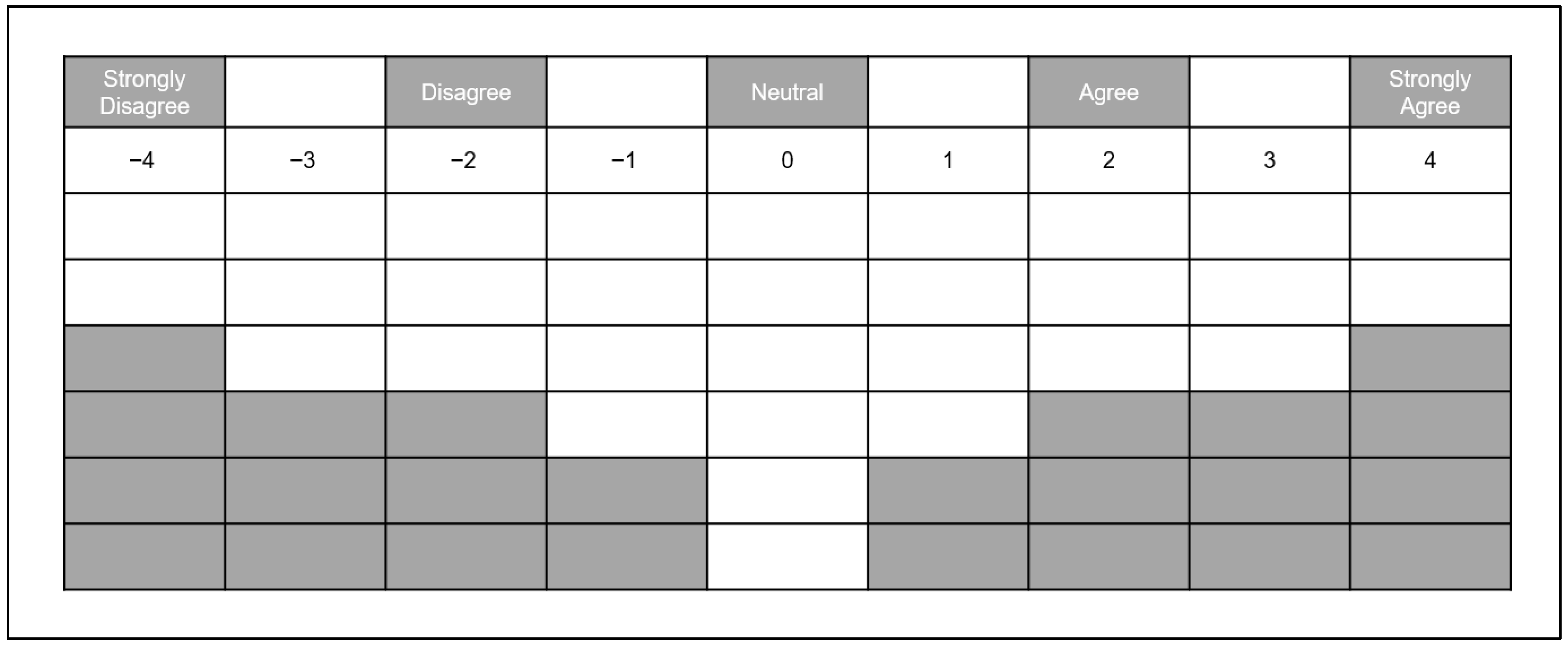 | Step 2 | Q Sample | Expert review, FGIs with 32 students, selected 30 Q statements from ~100 |