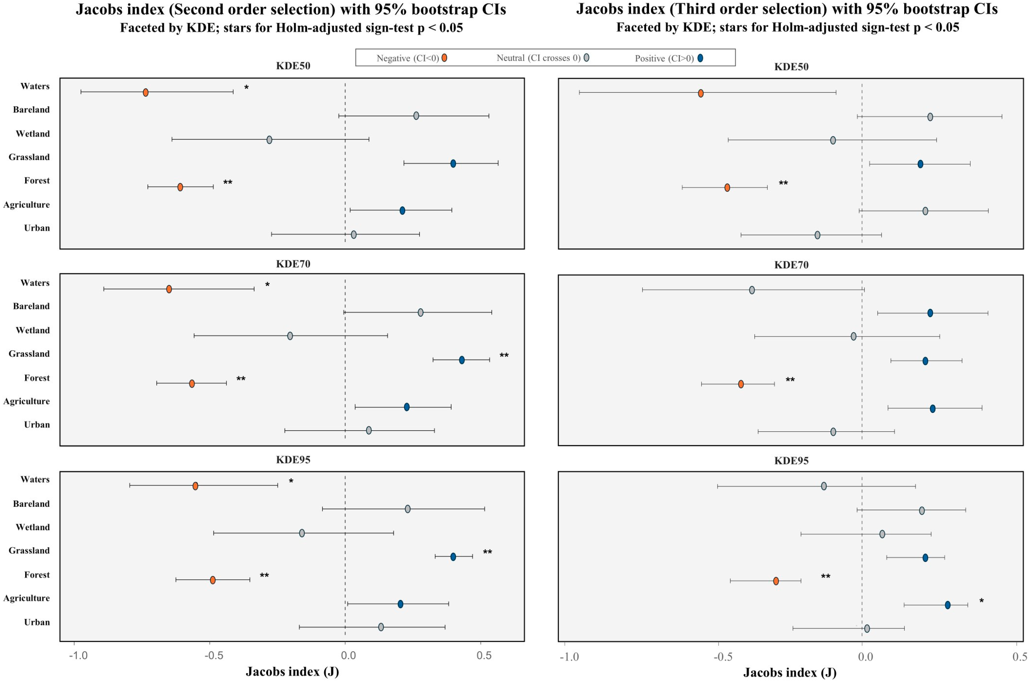 - Johnson, D.H. The comparison of usage and availability measurements for evaluating resource preference. Ecology 1980, 61, 65–71. [Google Scholar] [CrossRef]