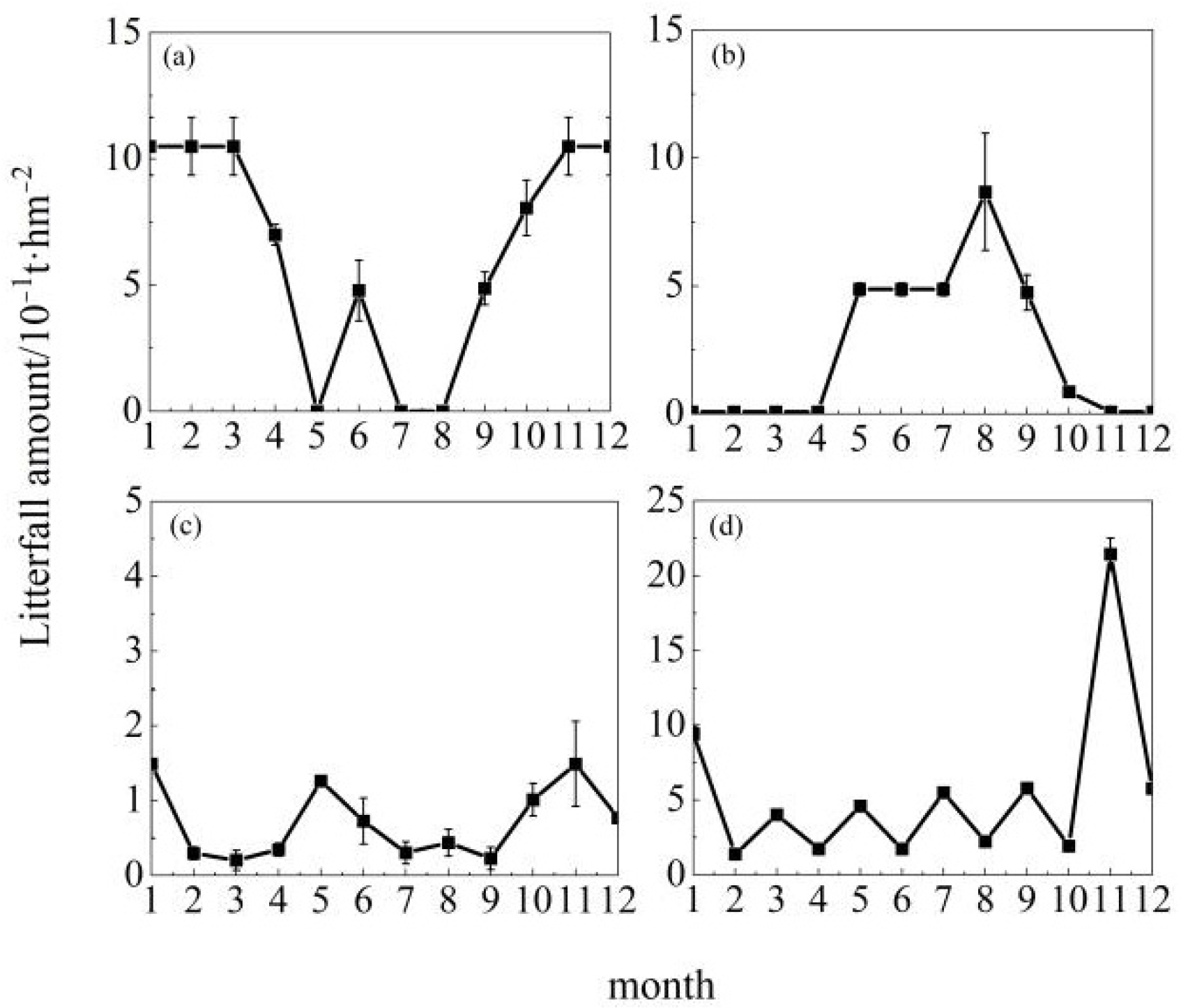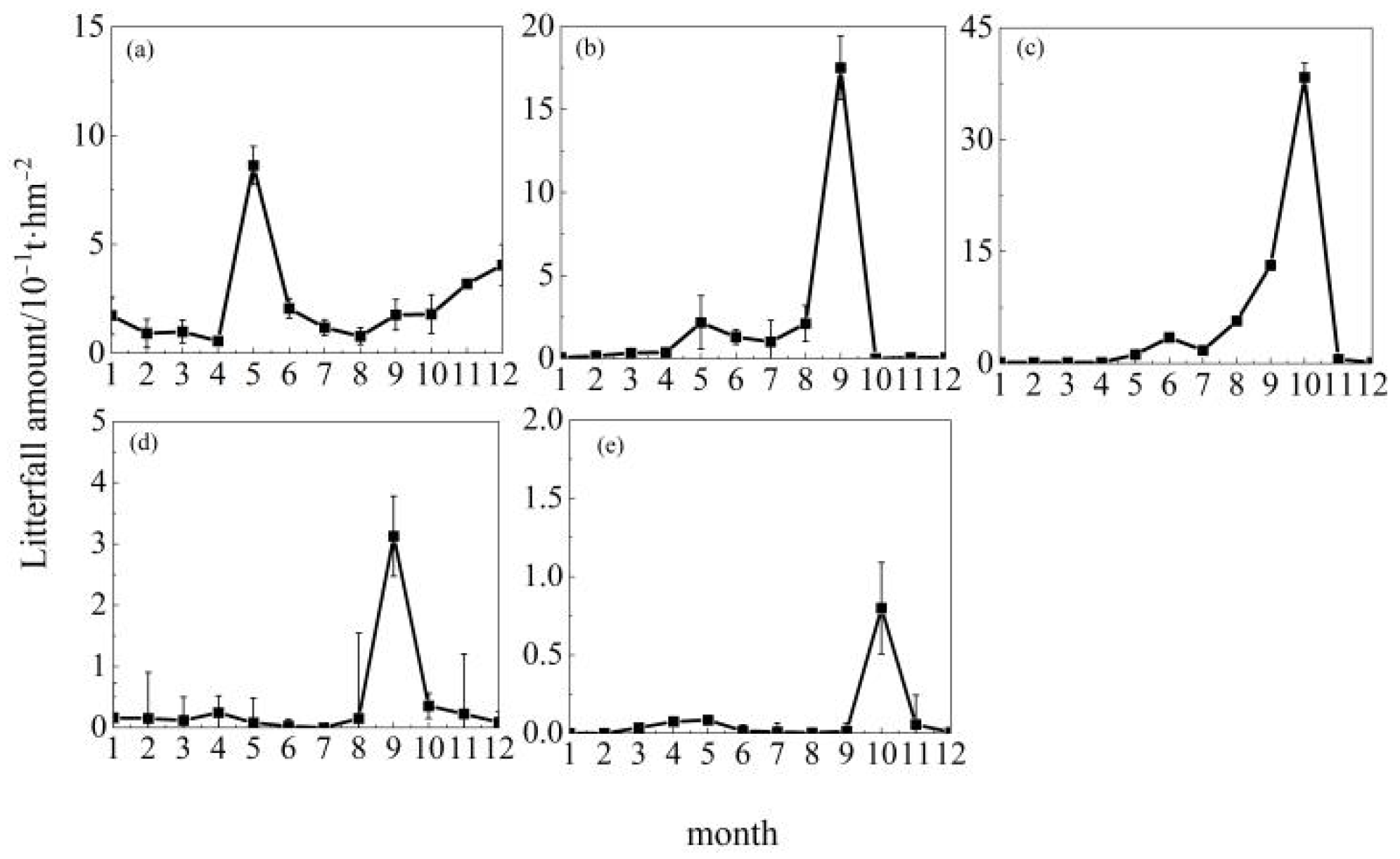 - Deng, X.X.; Wang, Z.C.; Li, C.; Guo, H.; Jin, K.C. Seasonal dynamics of the litter fall production of evergreen broadleaf forest and its relationships with meteorological factors at Tiantong of Zhejiang province. J. Cent. South Univ. For. Technol. 2017, 37, 73–78. [Google Scholar]