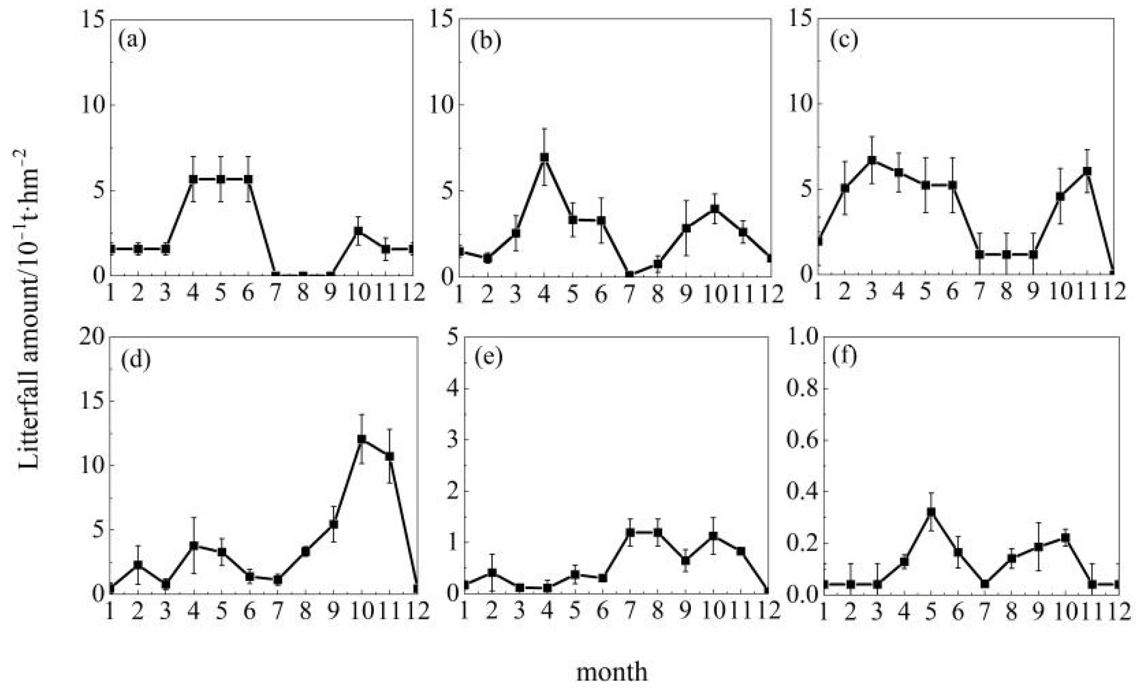 3.1.3. Monthly Dynamics of Litterfall Production