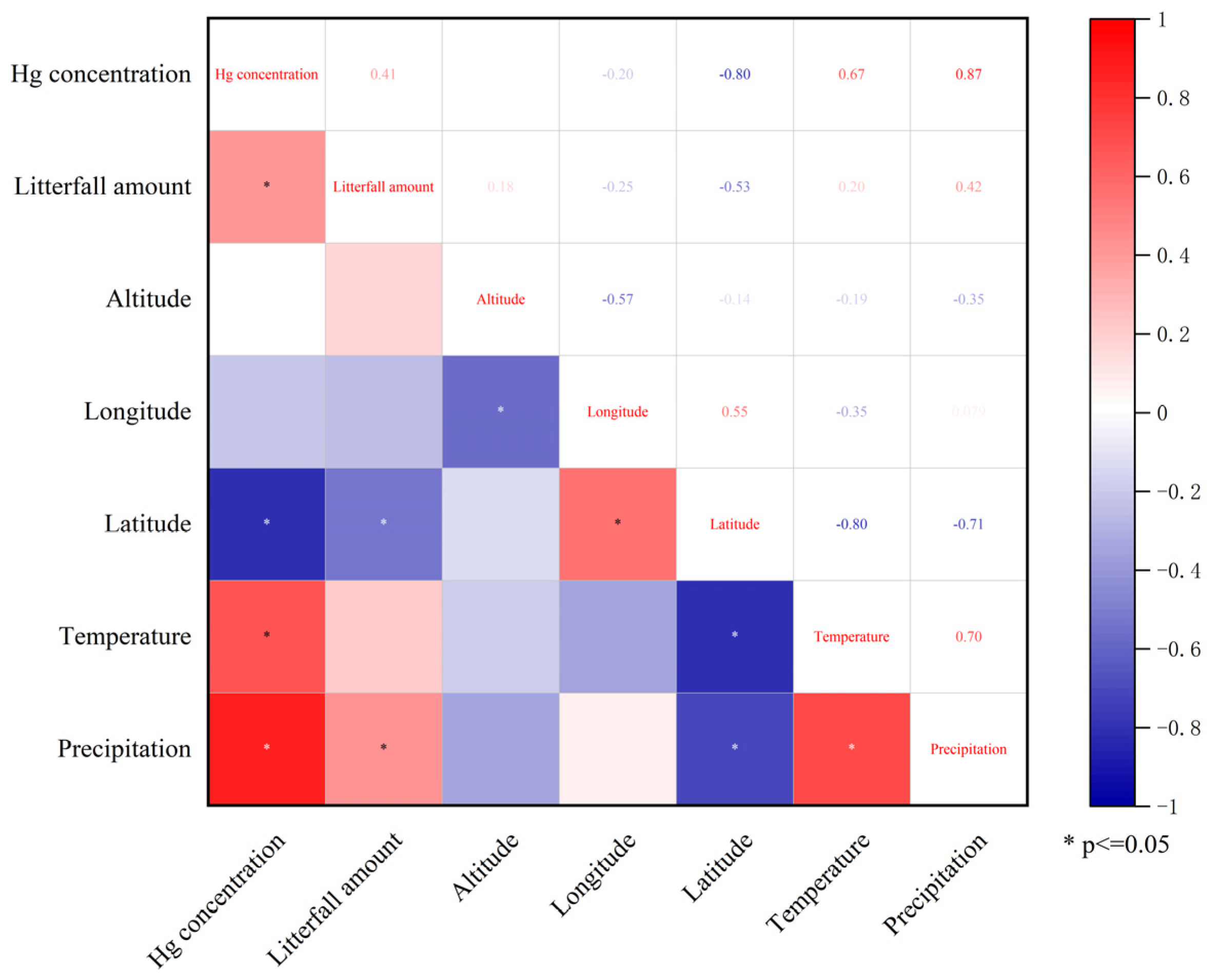 3.2. Variation in Litterfall Leaf Mercury Concentration Across Regions and Influencing Factors