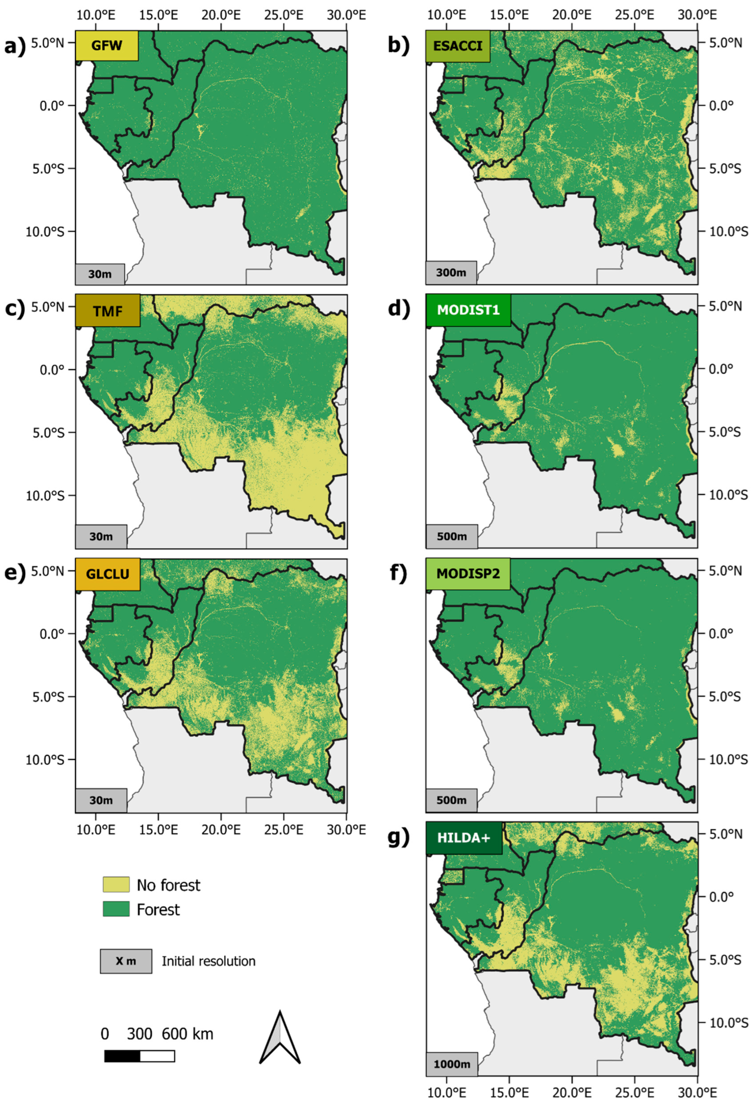 Renaudineau S, Frappart F, Peaucelle M, Sollier V, Wigneron J-P, Ciais P, Ygorra B. Forest Cover in the Congo Basin: Consistency Evaluation of Seven Datasets. Forests. 2025; 16(10):1609. https://doi.org/10.3390/f16101609
