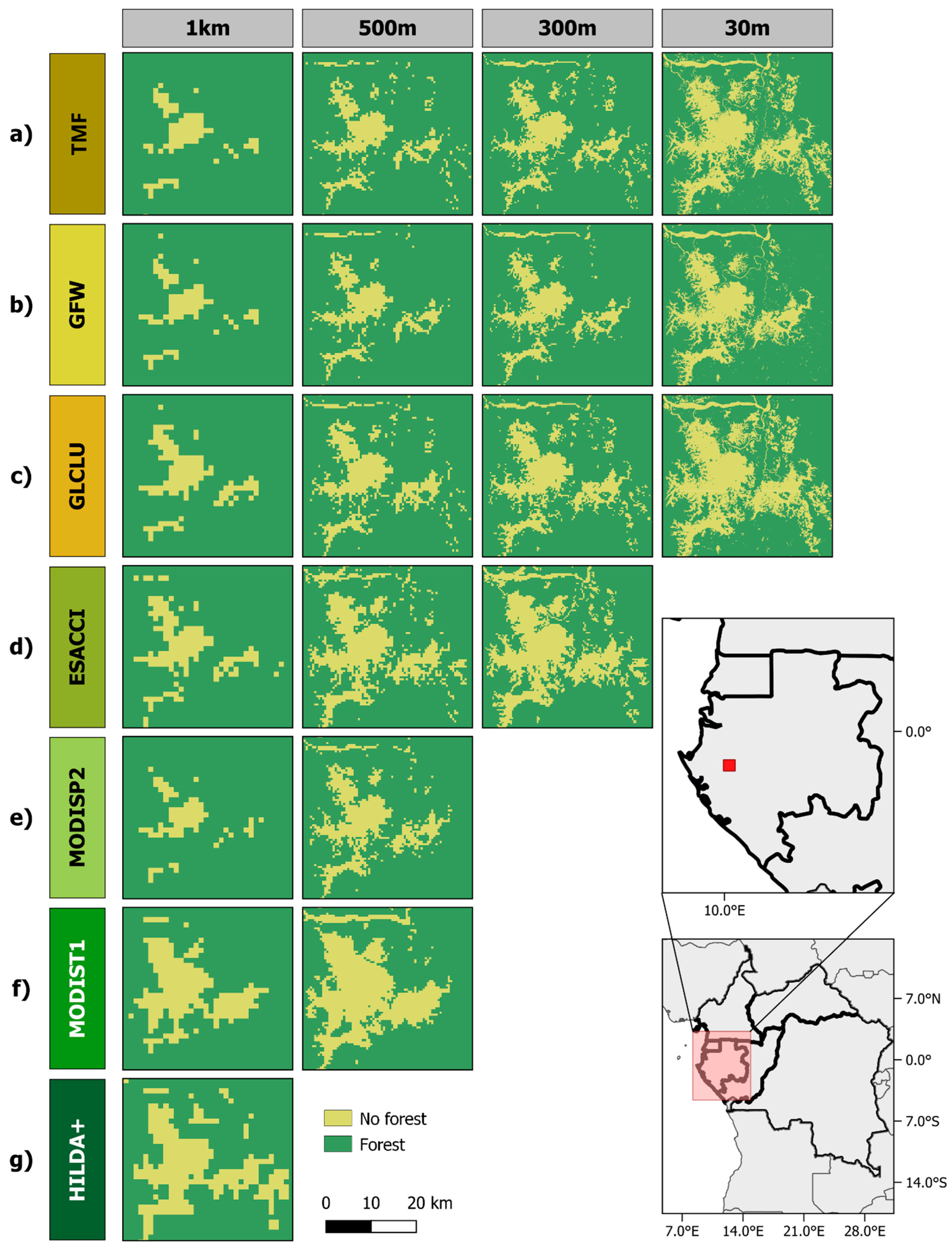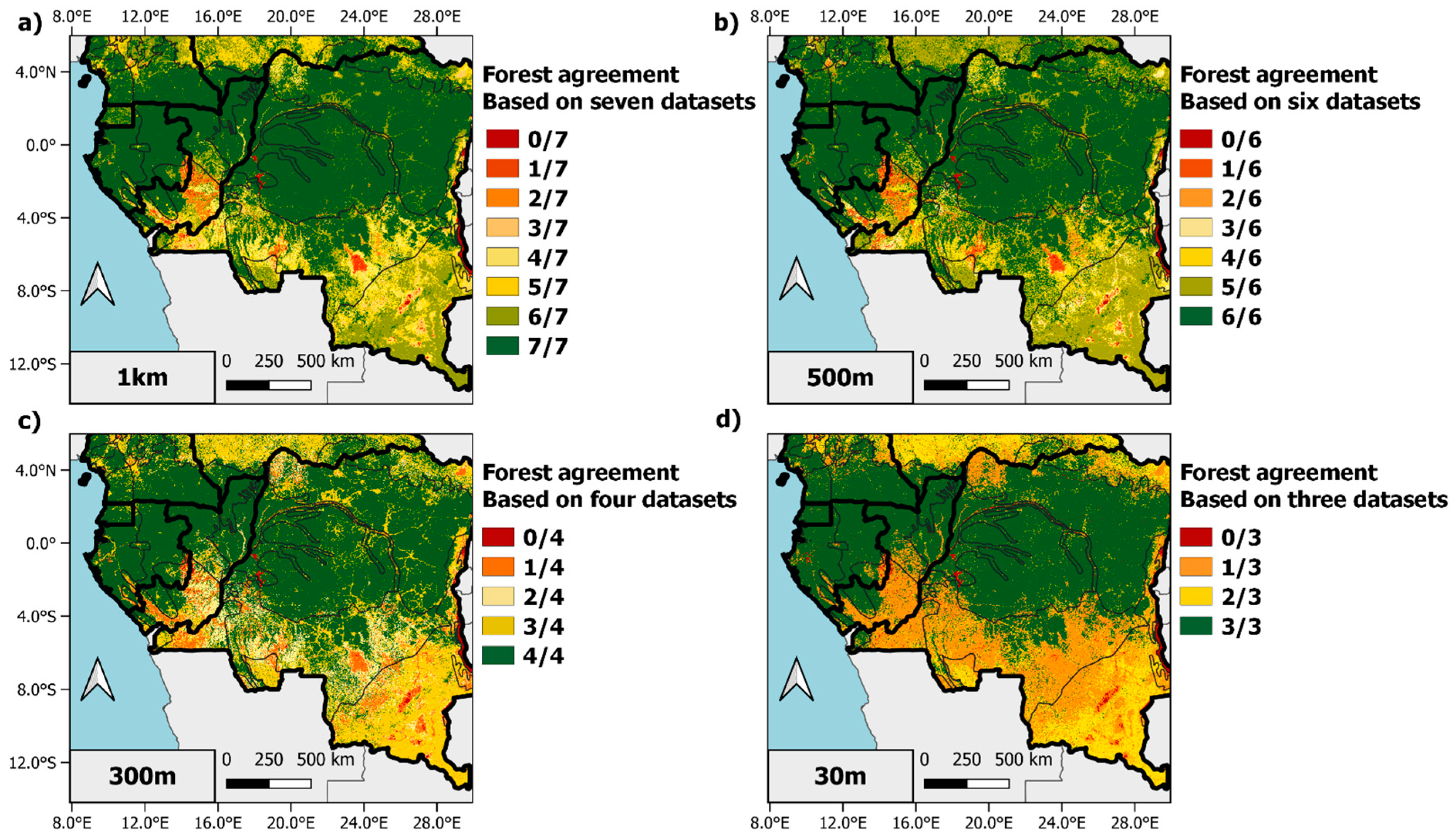 Forest Cover in the Congo Basin: Consistency Evaluation of Seven Datasets