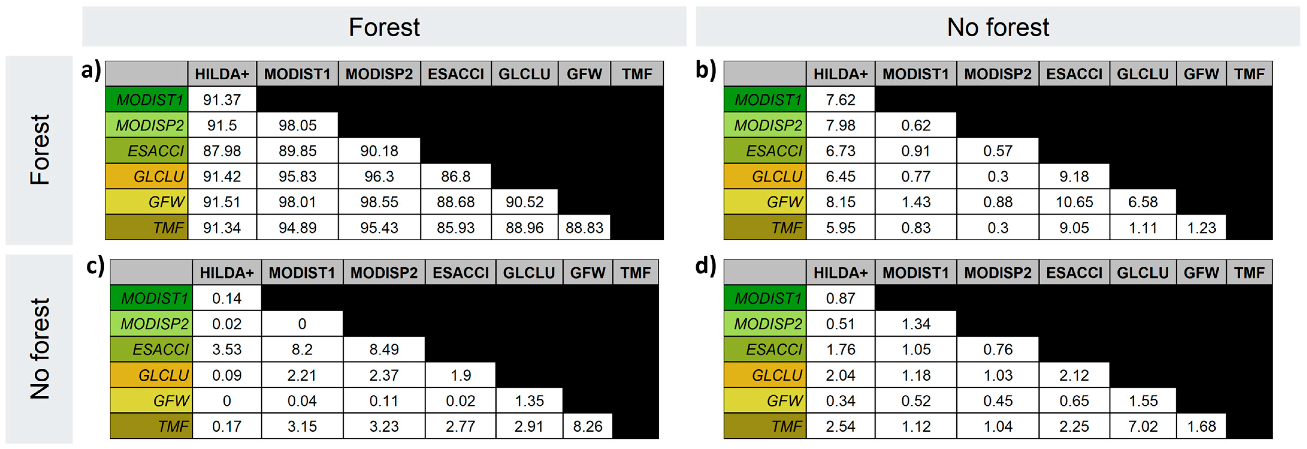 HILDA+ | MODIST1 | MODISP2 | ESACCI | GLCLU | GFW | TMF | |