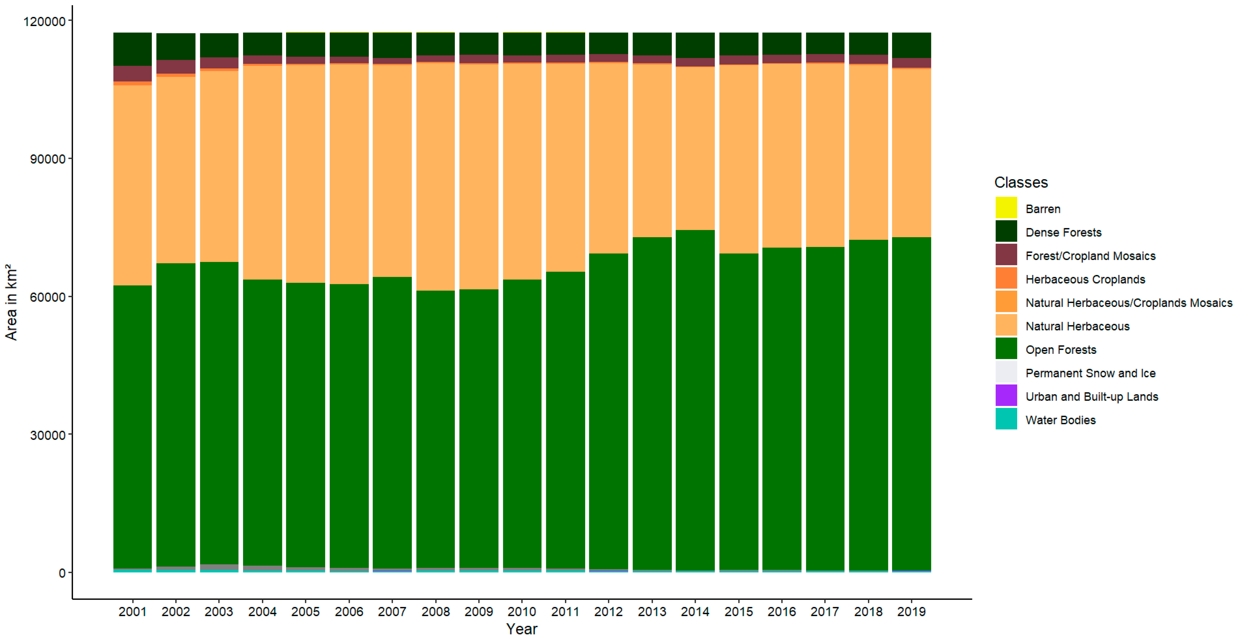 MODIST1 | https://appeears.earthdatacloud.nasa.gov/ | 21 March 2024 | Sulla-Menashe et al., 2019 [16] |