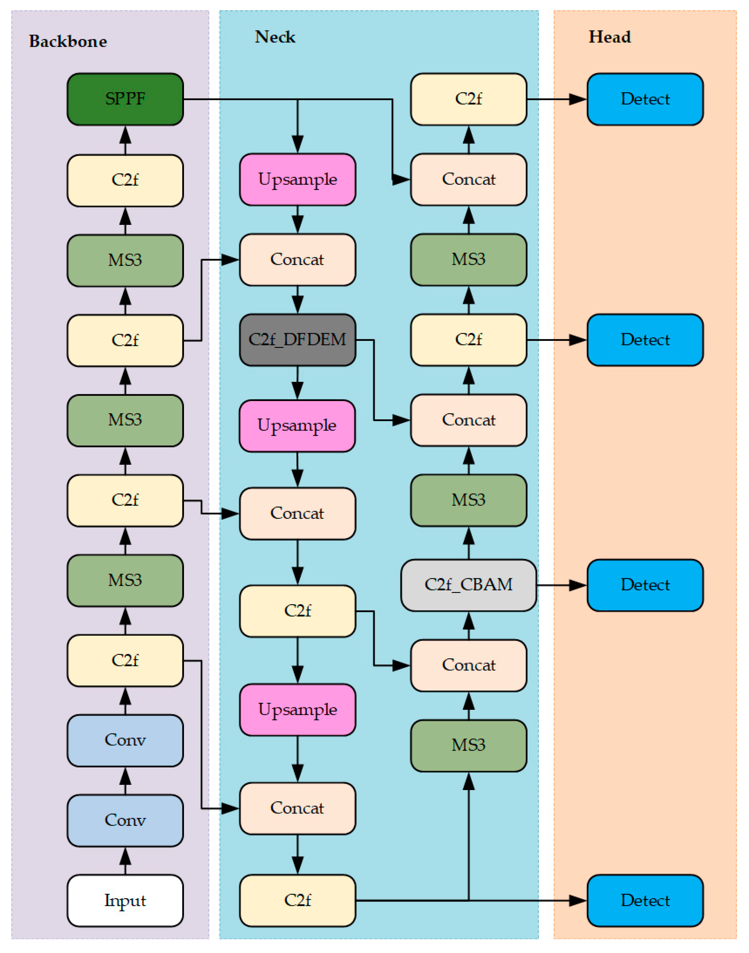 17] further optimized the neck structure of YOLOv5s, replacing traditional components with the GC-C3 module and SimSPPF, reducing the number of parameters by 46.7%; Ma et al. [