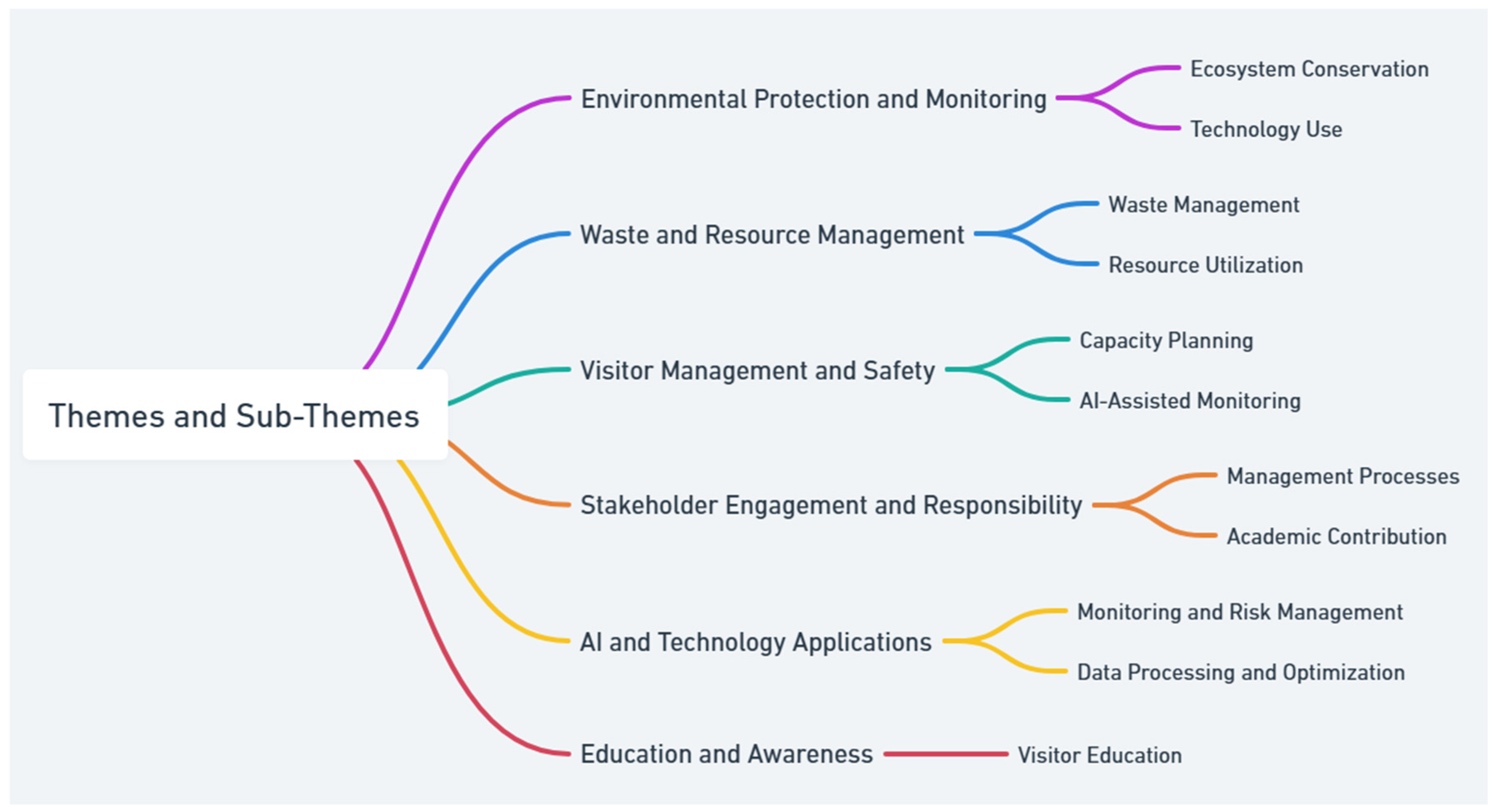 “We are particularly working in collaboration with local administrations. In recent years, we have been utilizing AI for the development of systems, monitoring protected areas, and ensuring the safety of forests open to visitors” (AI/Technology Expert, Turkey-5). “Recent forest fires have caused us great concern. To prevent them, we employ early warning systems with AI, aiming to minimize damage” (Forest Area Manager, Turkey-2). “In Nature and National Parks, we have been experiencing high visitor density in recent years. We developed mobile applications to monitor visitor numbers and peak times, informing relevant areas accordingly. These applications significantly facilitate our work” (Nature Tourism Manager, Turkey-1).