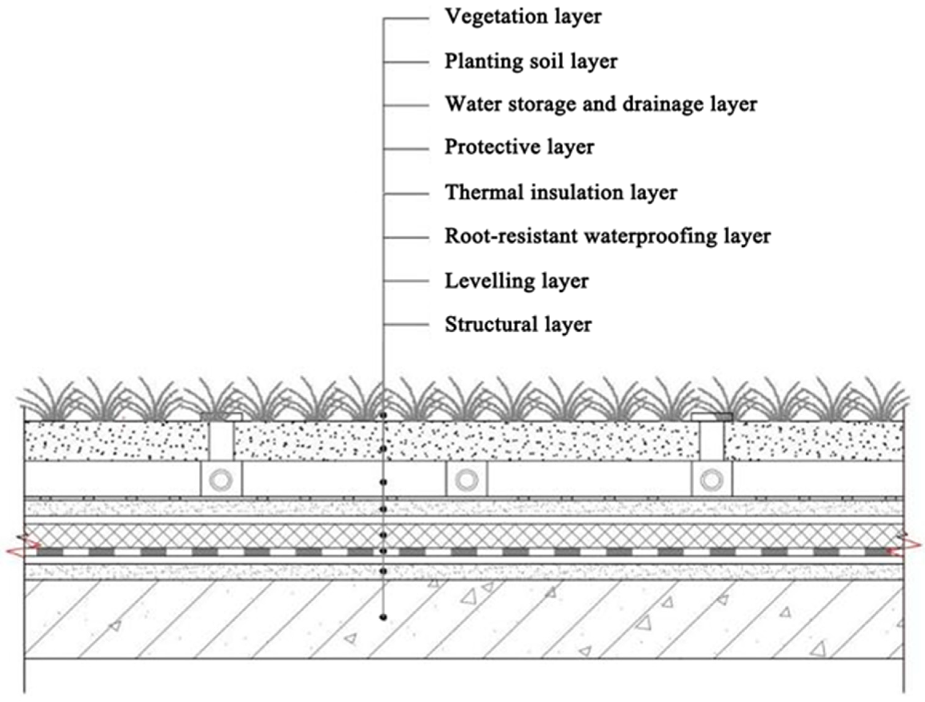 - Xu, F.; Chen, H.; Qin, L. Influence of greening roof load on built architecture structure. Eng. Constr. 2010, 42, 57–59. [Google Scholar] [CrossRef]